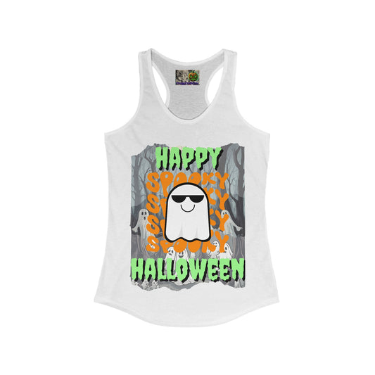 Spooky Happy Halloween Ghost Mixed font Women's Racerback Tank Top by CreepyCrafts.boo