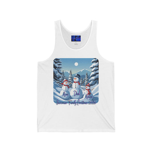 Snowman Family of 3 Unisex Jersey Tank Top by cypherpunkgear.com