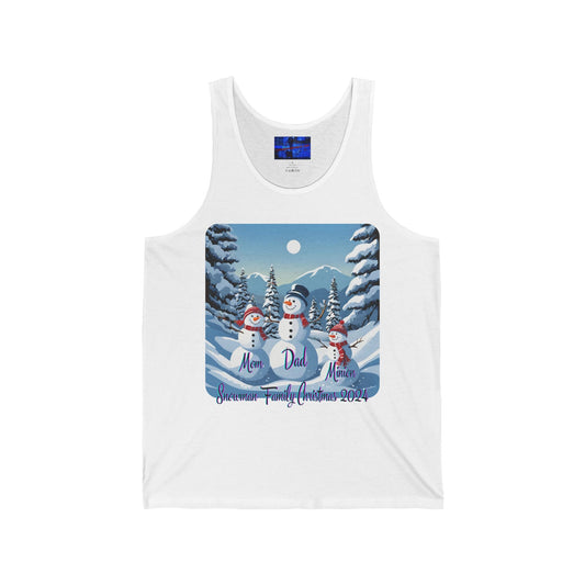 Snowman Family of 3 Unisex Jersey Tank Top by cypherpunkgear