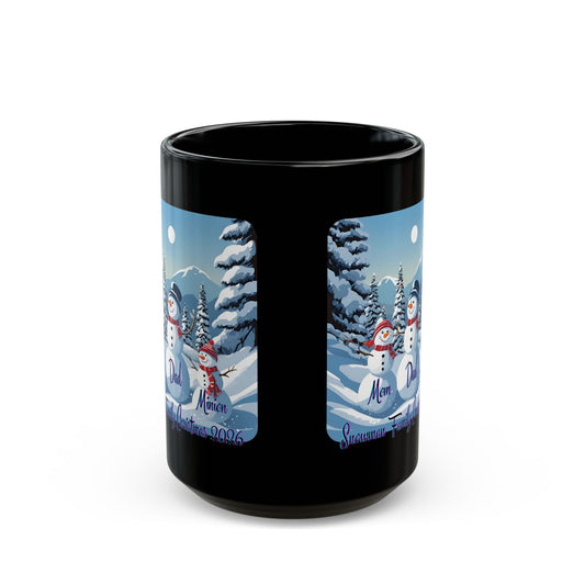 Snowman Family of 3 Black Mug by cypherpunkgear.com