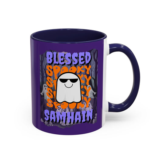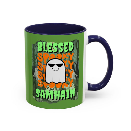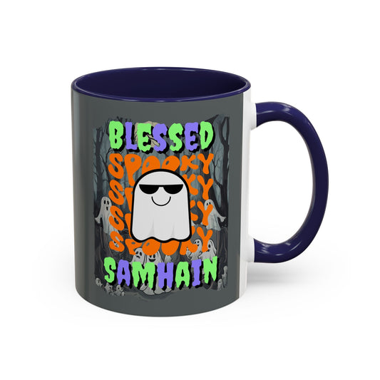 Spooky Blessed Samhain Ghost PRfont Accent Mug by cypherpunkgear