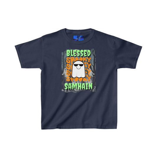 Spooky Blessed Samhain Ghost GNfont Kids Heavy Cotton™ Tee by cypherpunkgear