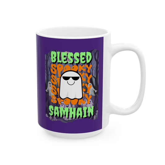 Spooky Blessed Samhain Ghost GNfont Purple Mug by cypherpunkgear