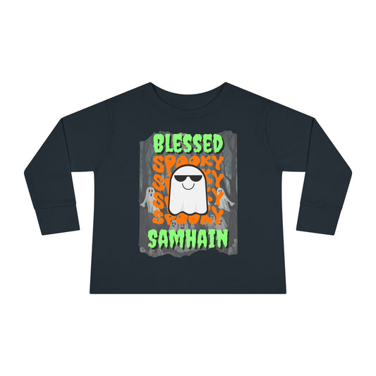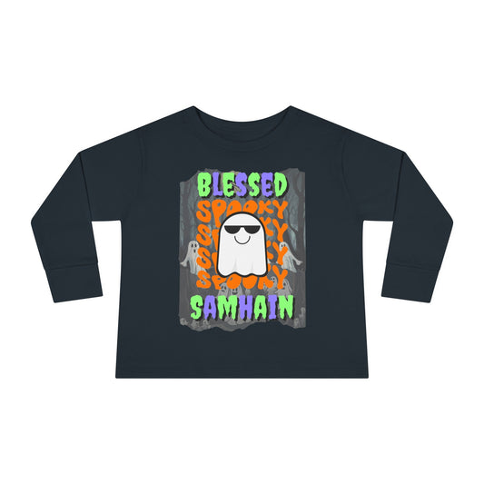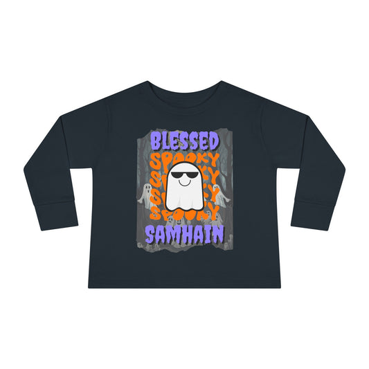 Spooky Blessed Samhain Ghost PRfont Toddler Long Sleeve Tee by cypherpunkgear