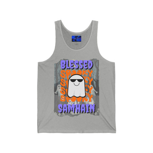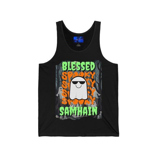 Spooky Blessed Samhain Ghost PRfont Unisex Jersey Tank Top by cypherpunkgear