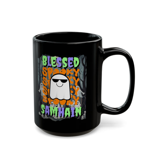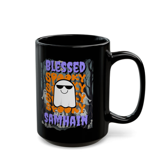 Spooky Blessed Samhain Ghost PRfont Black Mug by cypherpunkgear