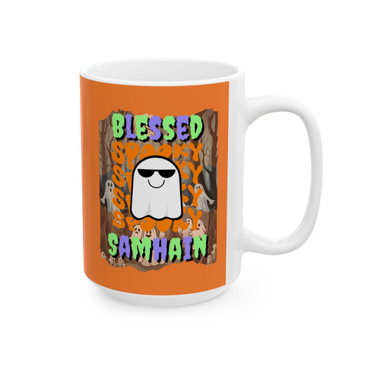 Spooky Blessed Samhain Ghost MXfont Accent Mug by cypherpunkgear