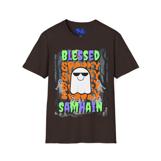 Spooky Blessed Samhain Ghost MXfont Unisex T-Shirt by cypherpunkgear