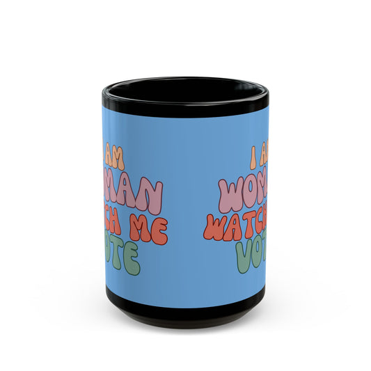 I Am Woman Watch Me Vote Black Mug by cypherpunkgear.com