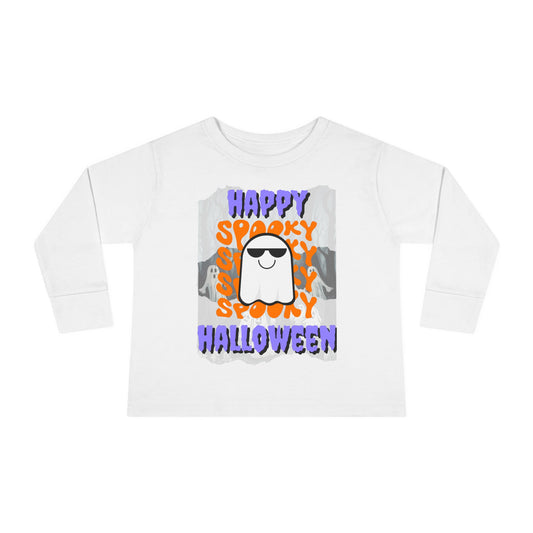 Spooky Happy Halloween Ghost Mixed font Toddler Long Sleeve Tee by CreepyCrafts.boo