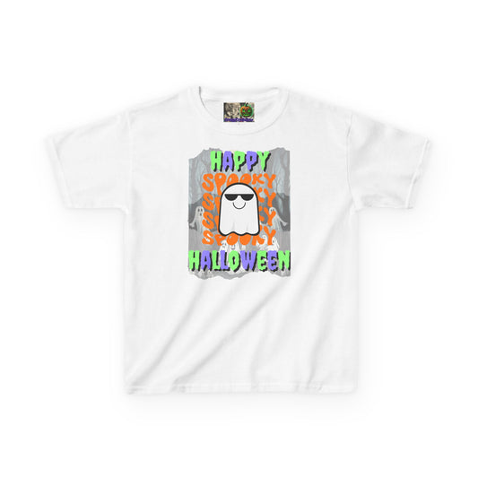 Spooky Happy Halloween Ghost Mixed font Kids Heavy Cotton™ Tee by CreepyCrafts.boo