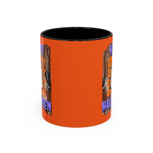 Spooky Happy Halloween Ghost Mixed font Orange Accent Mug by CreepyCrafts.boo
