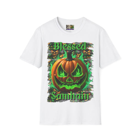 Blessed Samhain Green Jack Light colors Unisex T-Shirt by CreepyCrafts.boo