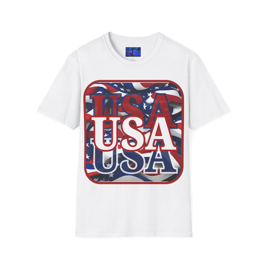 ¡EE.UU! ¡EE.UU! ¡EE.UU! ¡Patriot de 2 caras de cypherpunkgear! Camiseta unisex de estilo suave