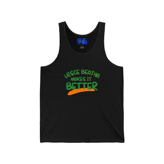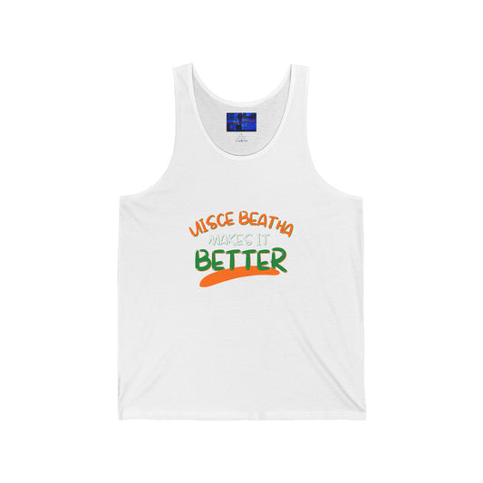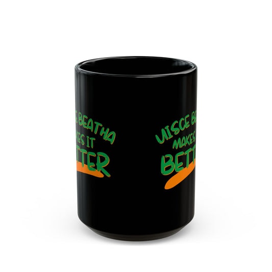 Uisce Beatha makes it better Orange, White, and Green font Black Mug by cypherpunkgear.com
