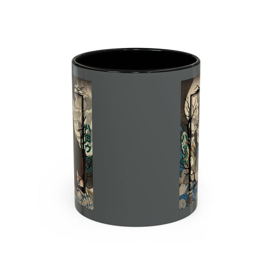 Yōkai Happy Halloween Grey Accent Mug by CreepyCrafts.boo