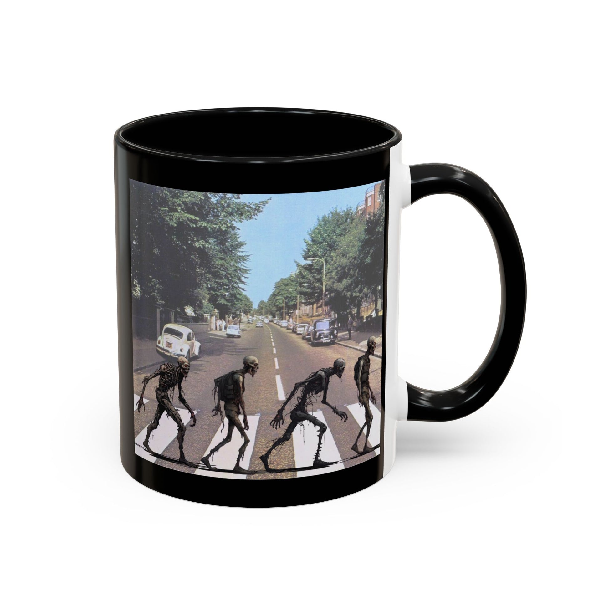 Enjoy your favorite bean juice in your 2-sided, Scabby Road Black Accent Mug by CreepyCrafts.boo