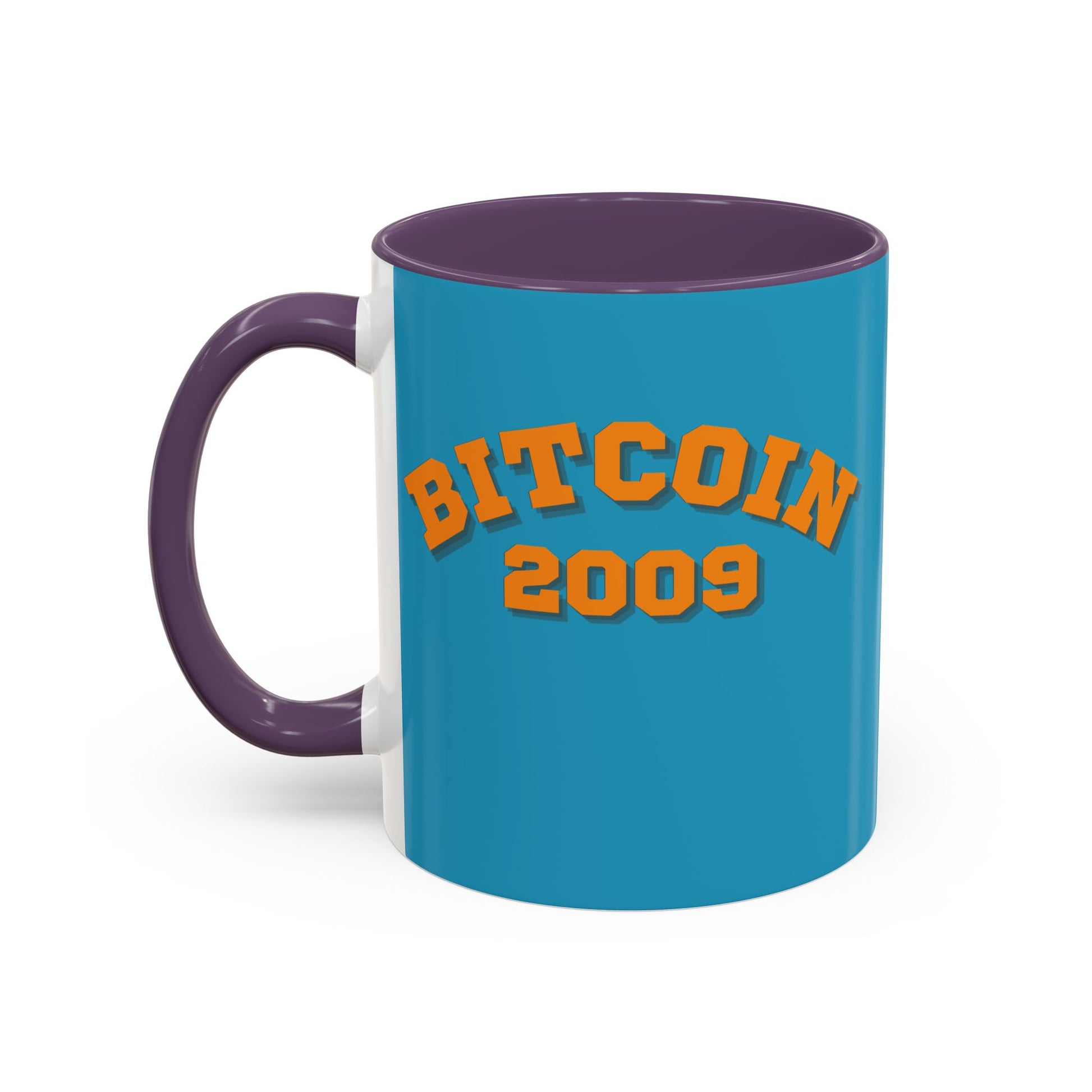 Bitcoin 2009 Turquoise Accent Mug by cypherpunkgear.com