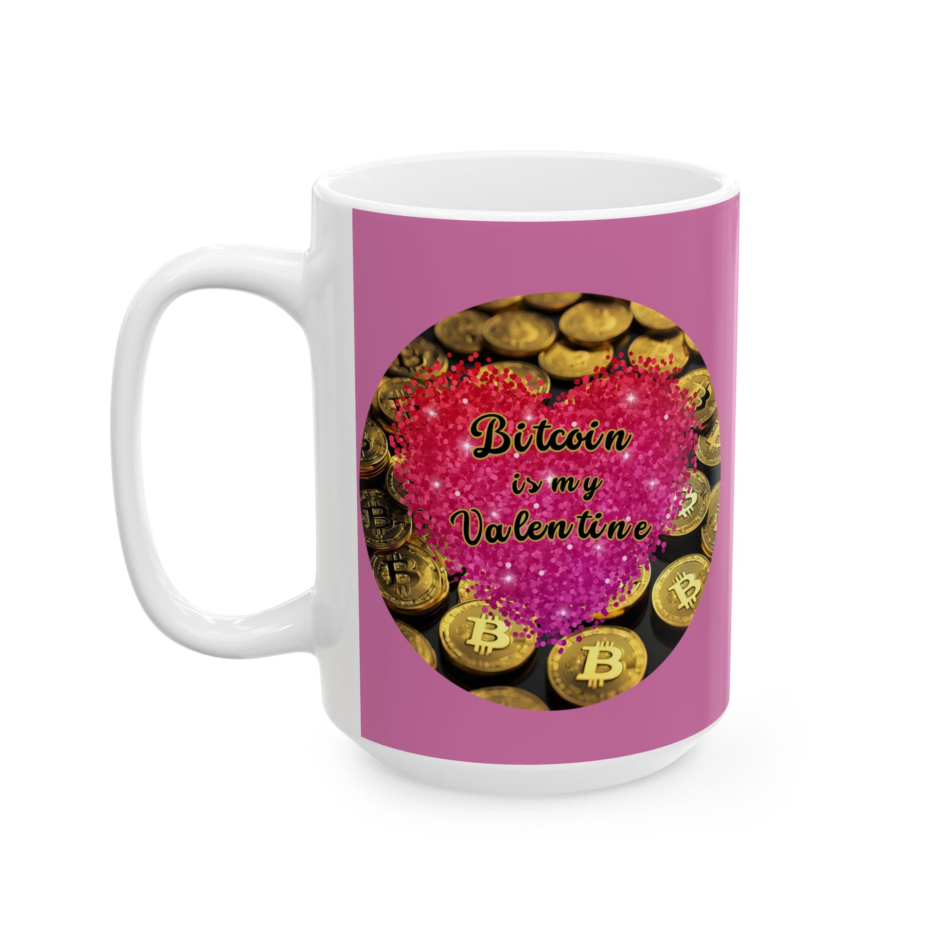 Bitcoin is My Valentine Pink and White Mug by cypherpunkgear.com