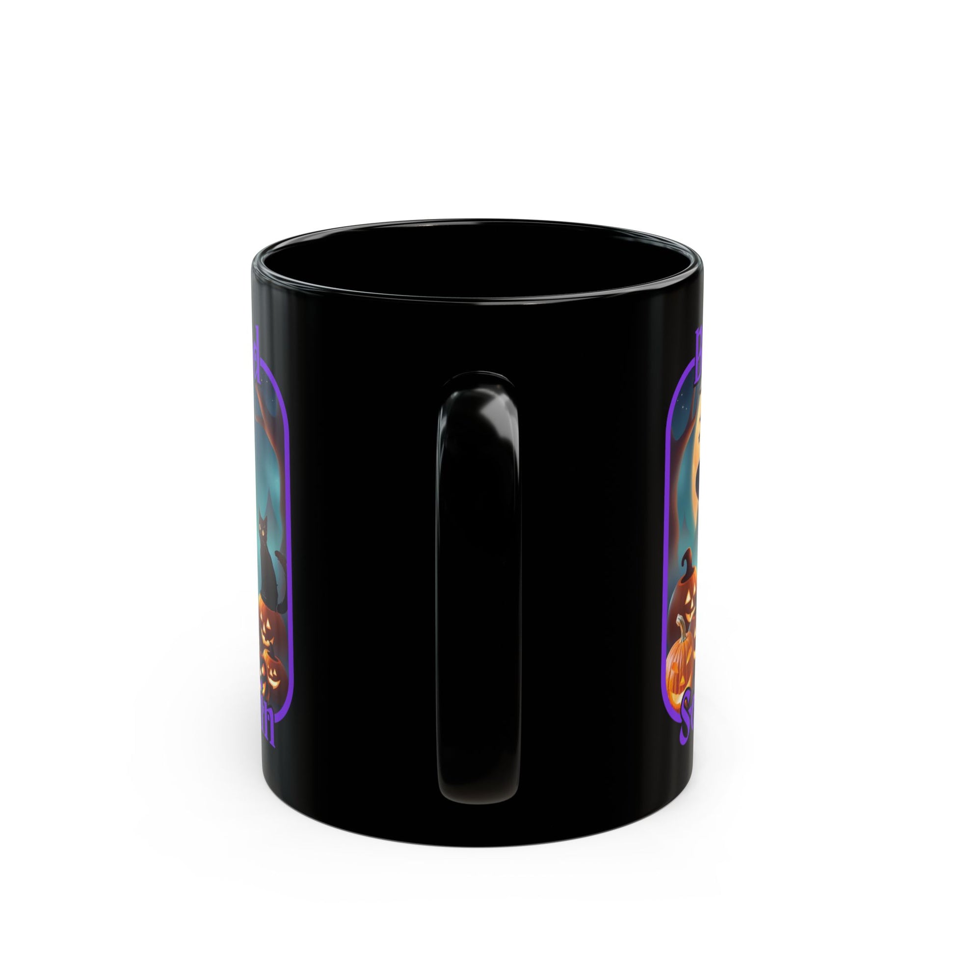 Blessed Samhain Cute Witch Purple font Black Mug by CreepyCrafts.boo