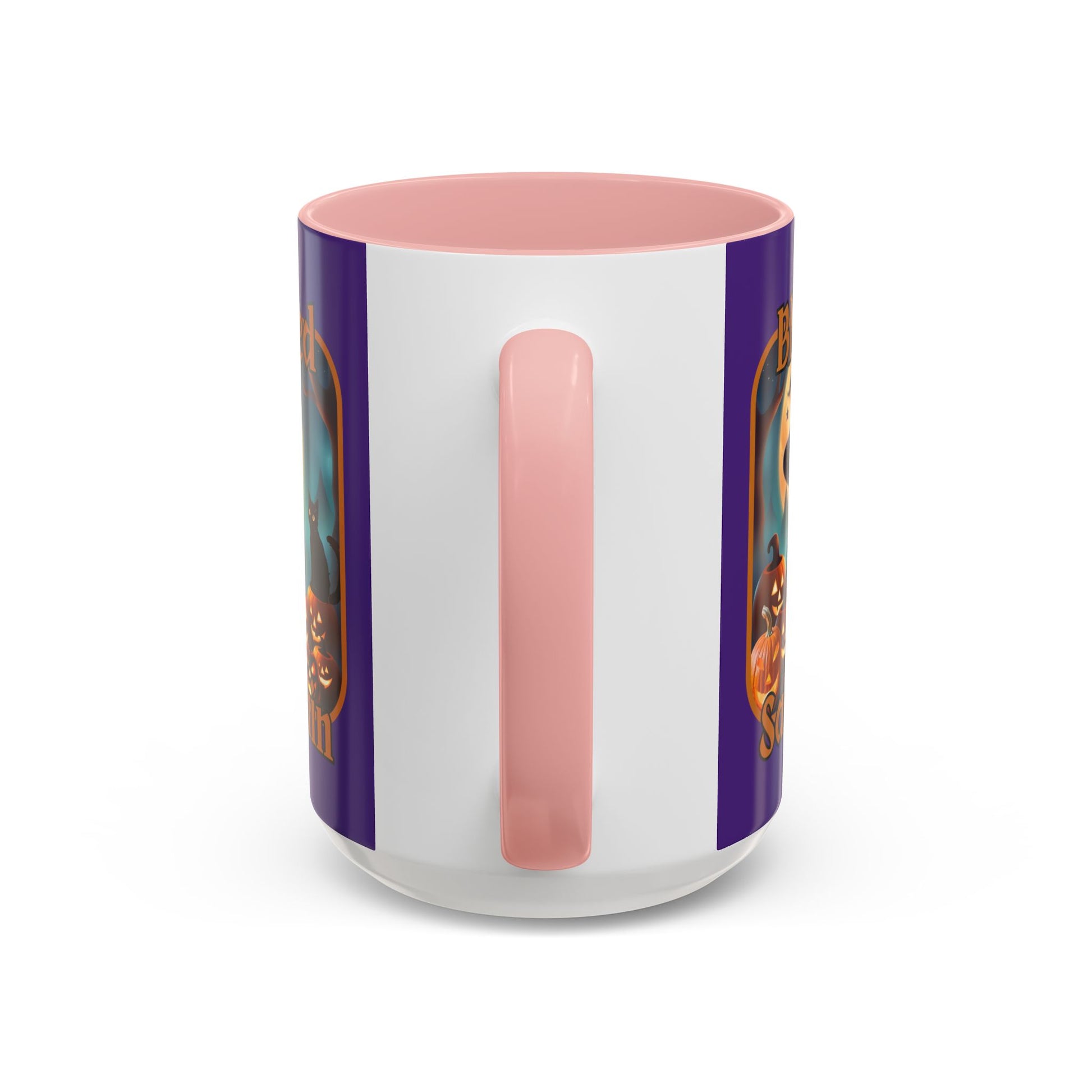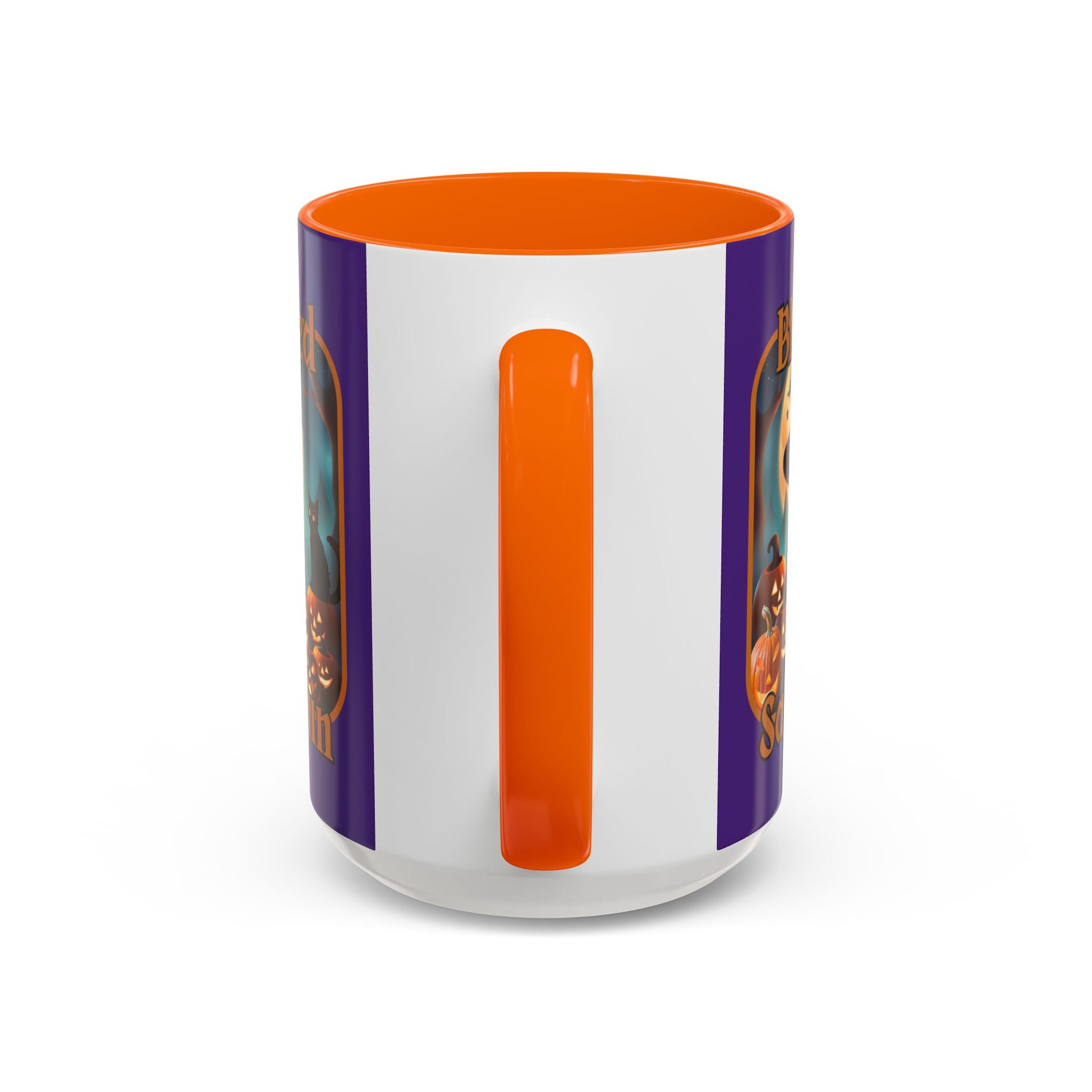 Blessed Samhain Cute Witch Orange font Purple Accent Mug by CreepyCrafts.boo