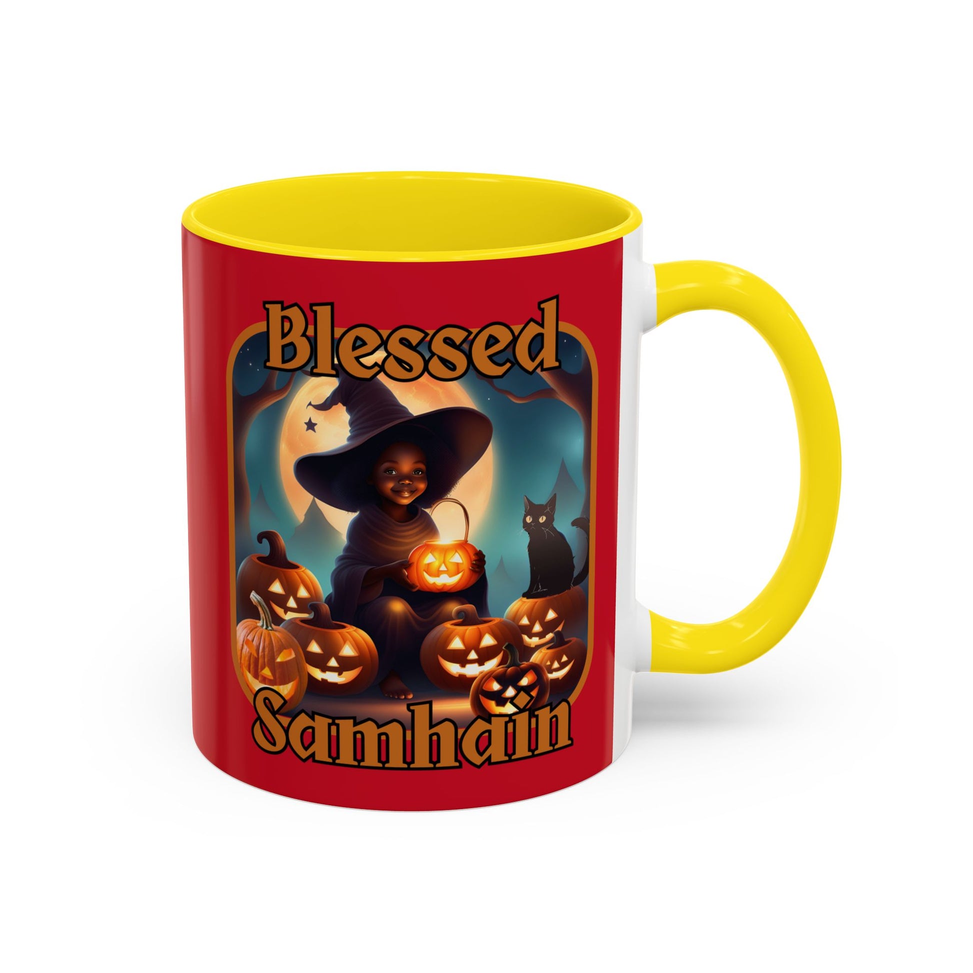 Also available with purple font: Blessed Samhain Cute Witch Purple font Red Accent Mug by CreepyCrafts.boo
