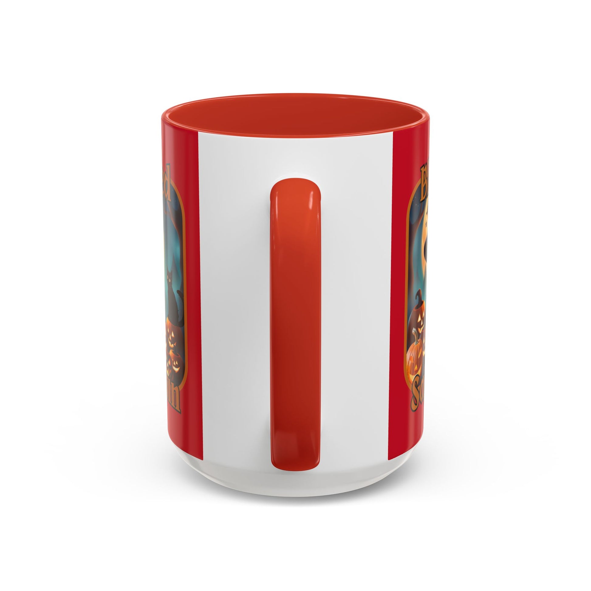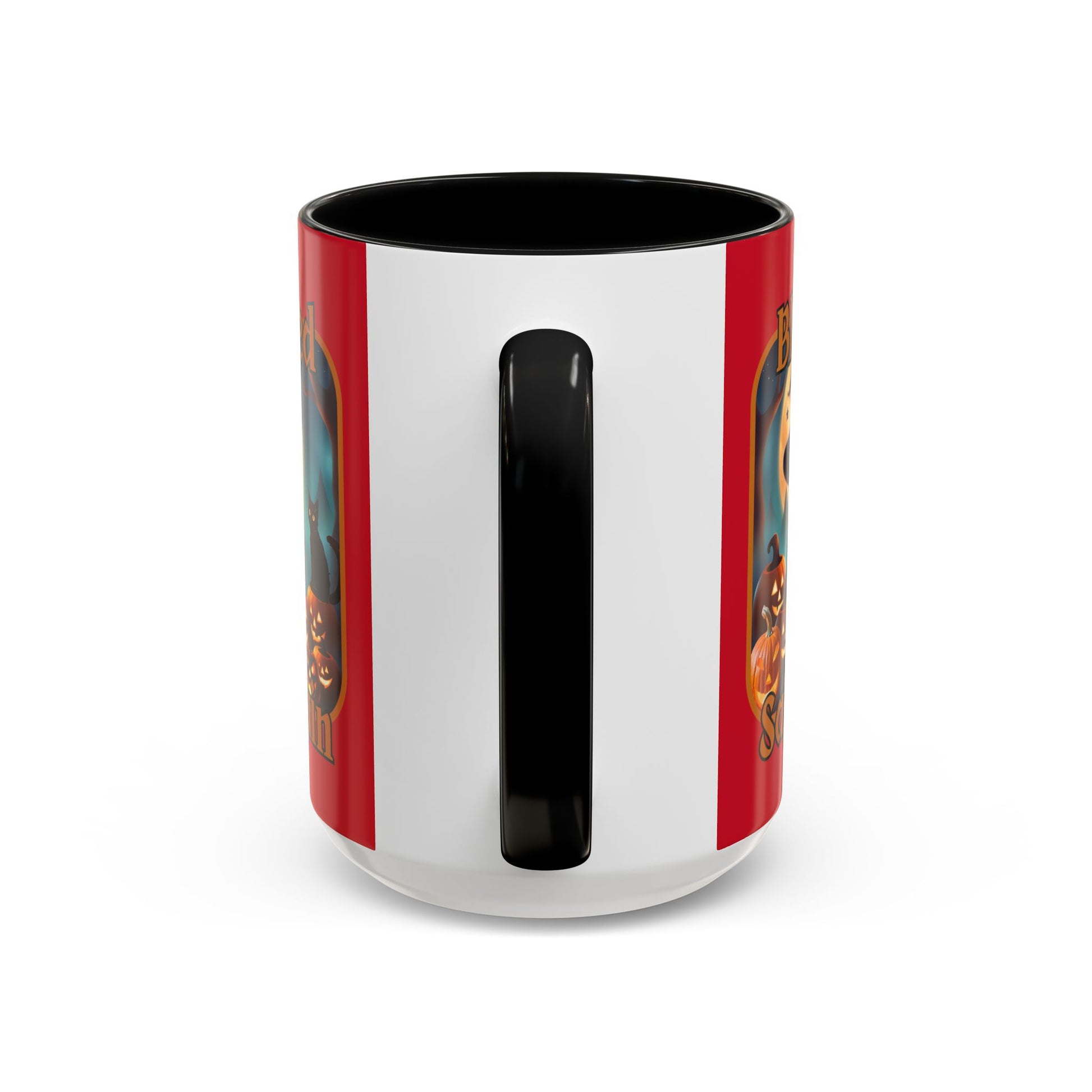 Blessed Samhain Cute Witch Orange font Red Accent Mug by CreepyCrafts.boo