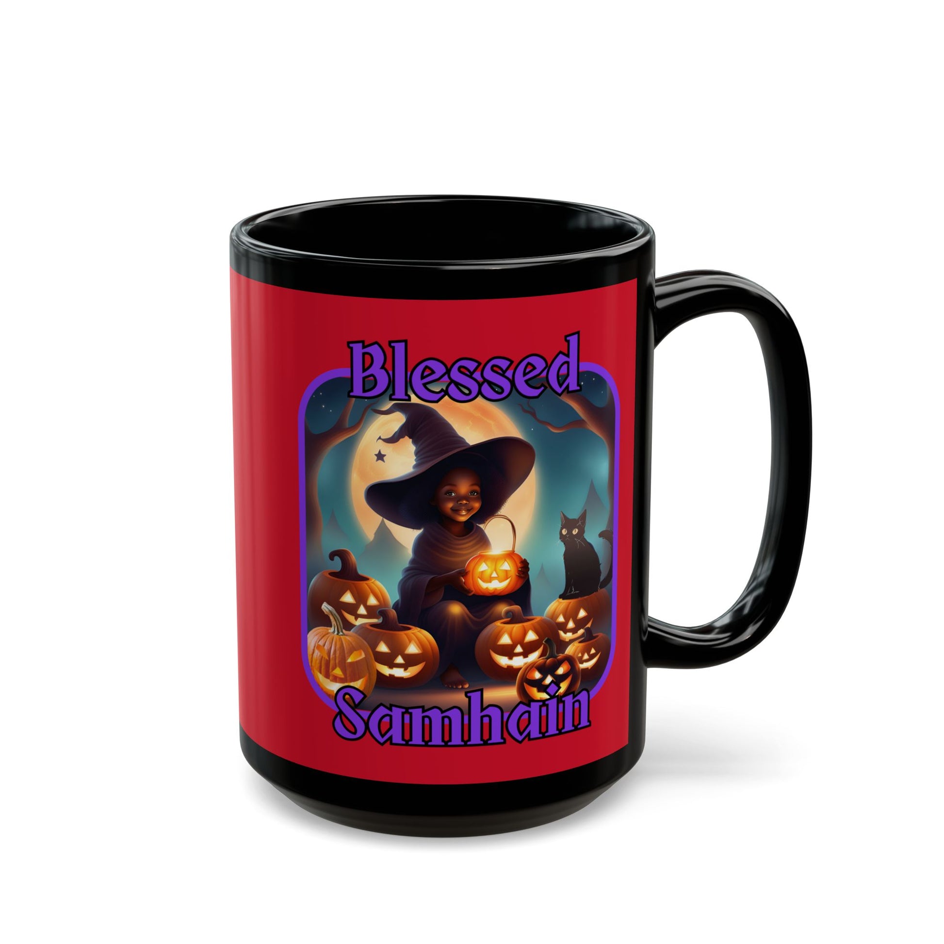 Also available with orange font: Blessed Samhain Cute Witch Orange font Red Mug by CreepyCrafts.boo