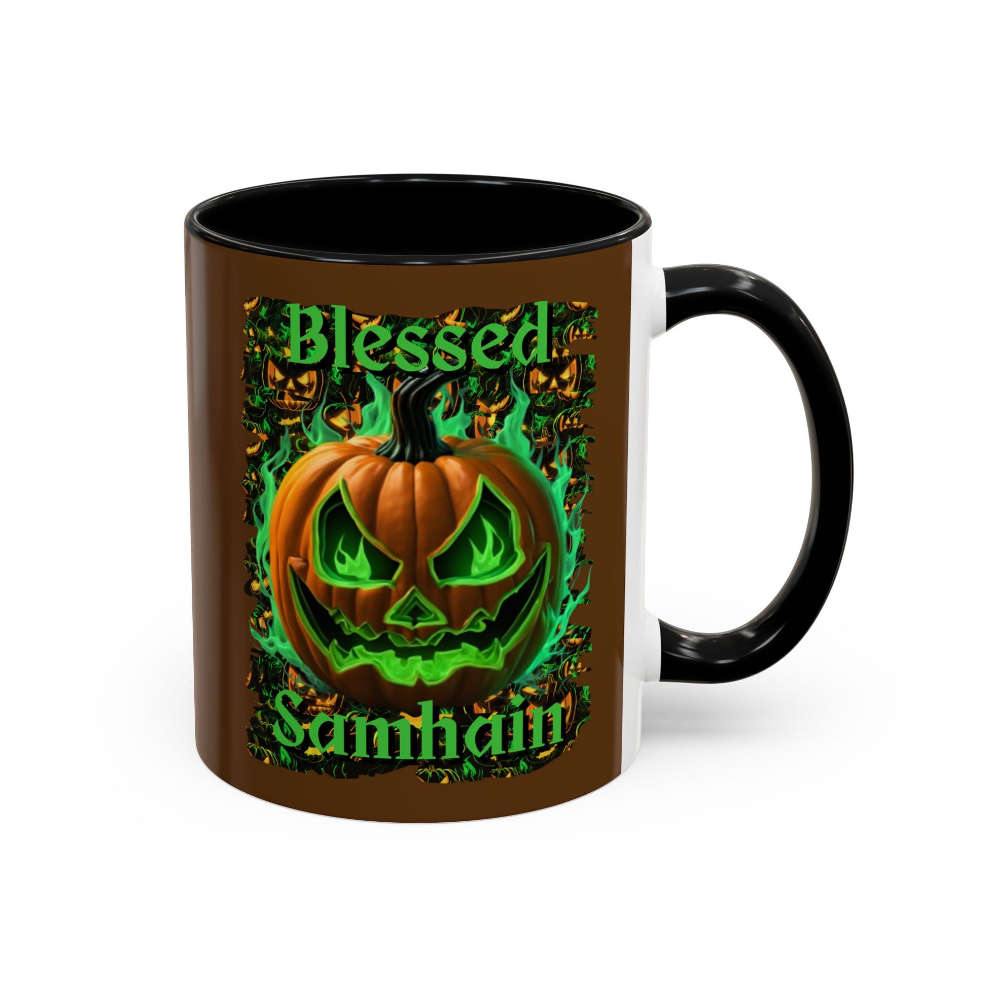 Blessed Samhain Green Jack Brown Accent Mug by CreepyCrafts.boo