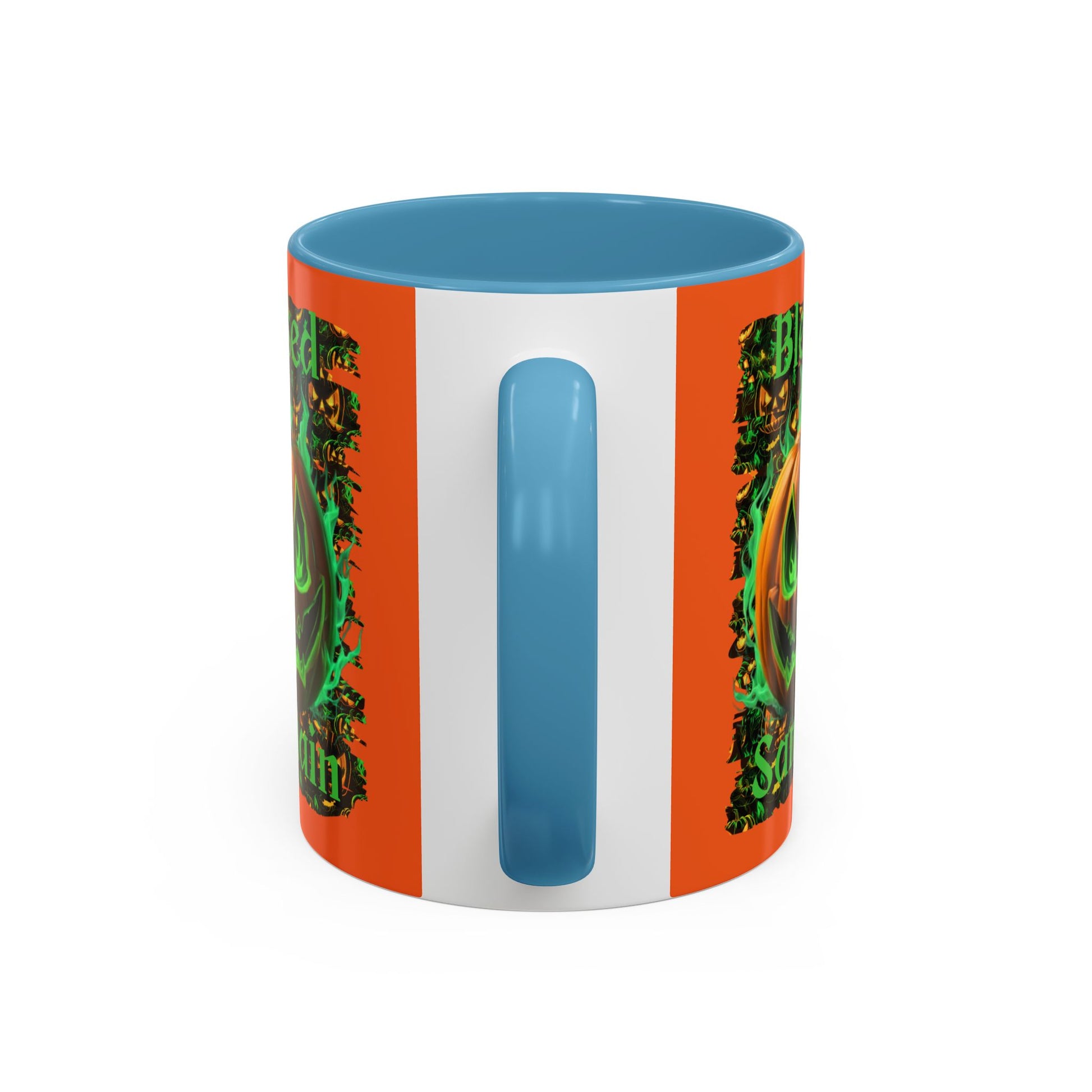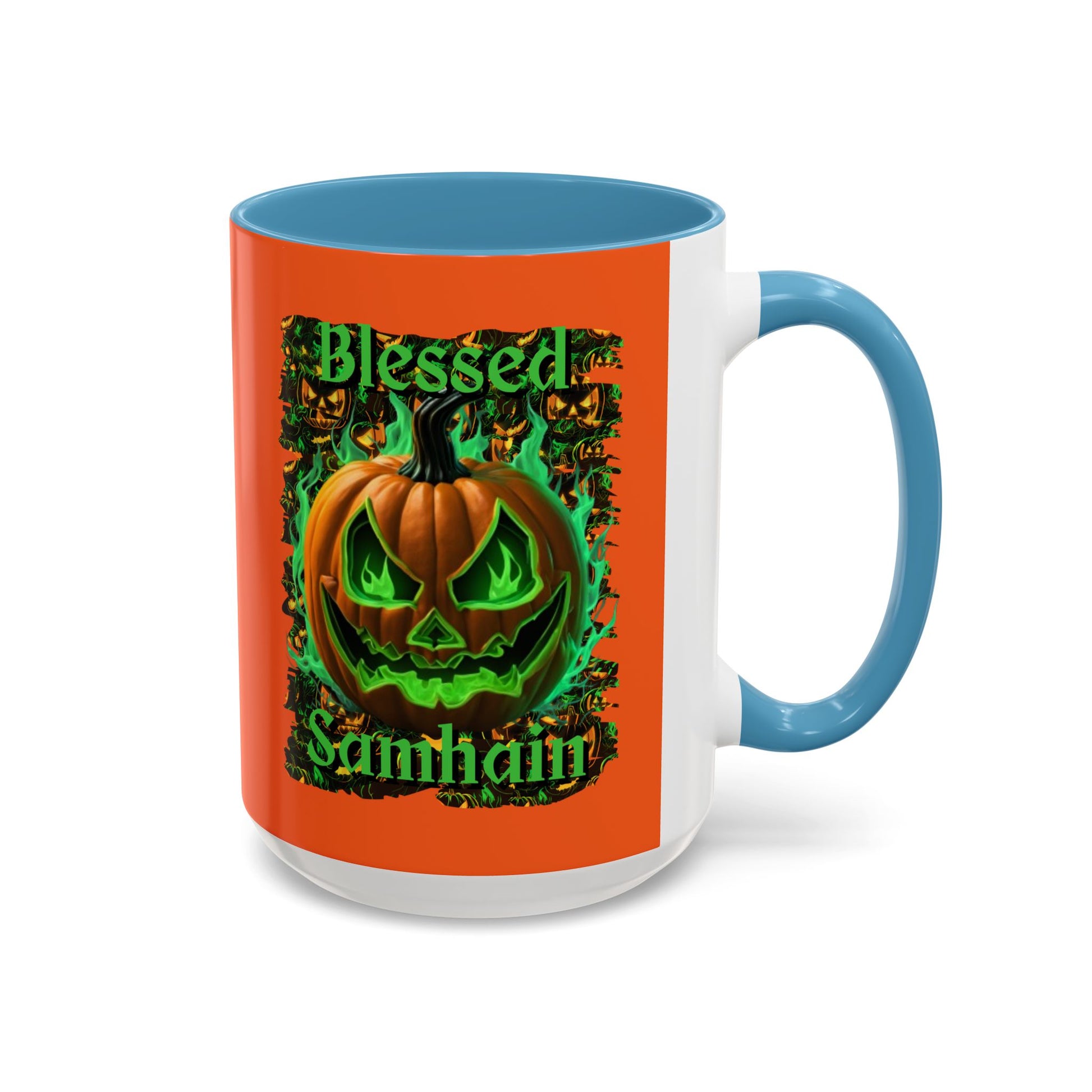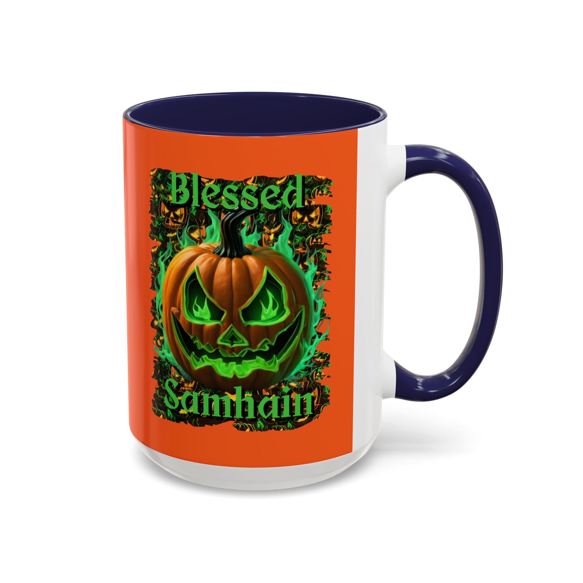 Blessed Samhain Green Jack Orange Accent Mug by CreepyCrafts.boo