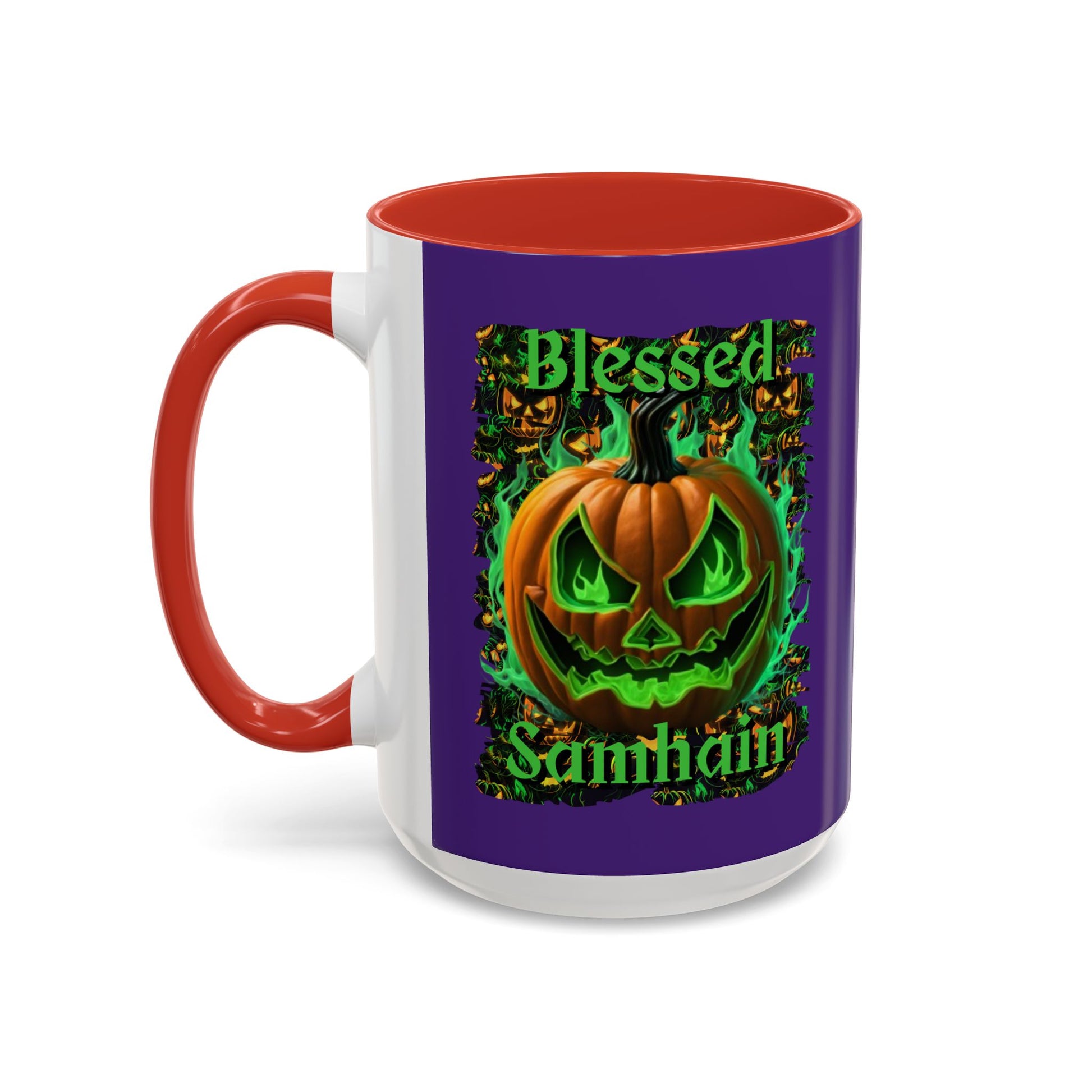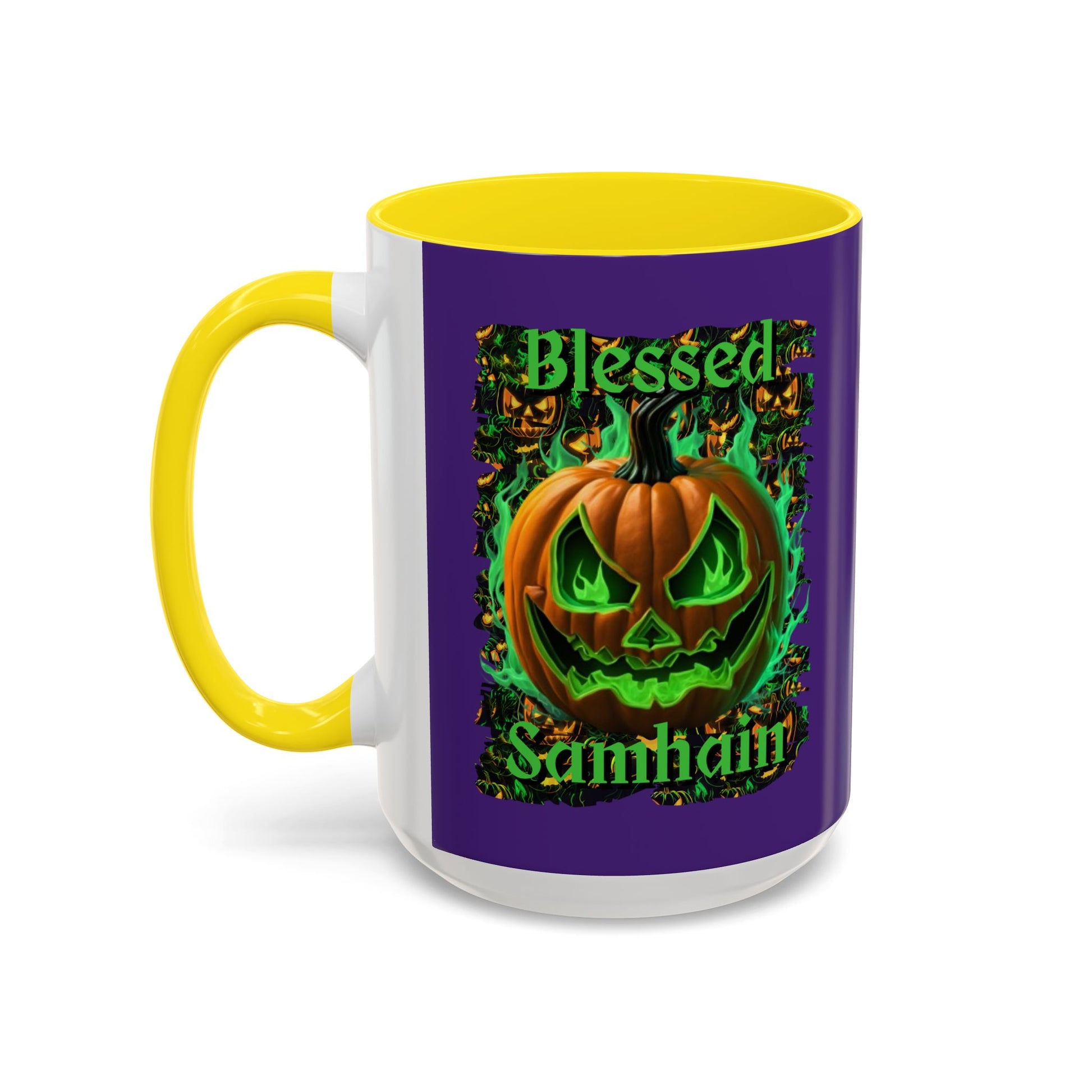 Blessed Samhain Green Jack Purple Accent Mug by CreepyCrafts.boo