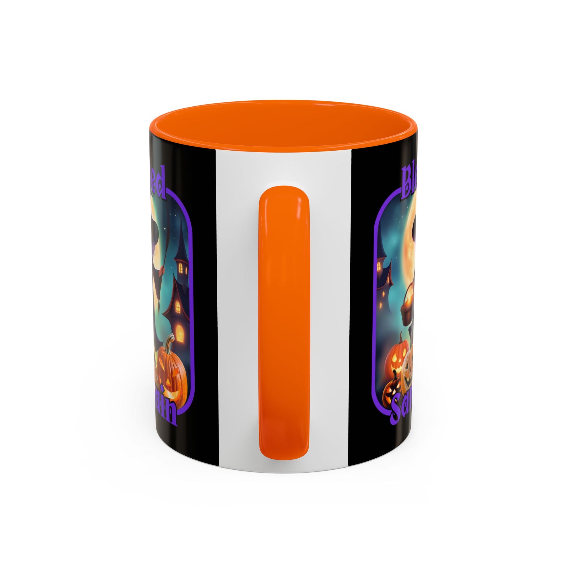 Also available with orange font: Blessed Samhain Little Witch Orange font Black Accent Mug by CreepyCrafts.boo