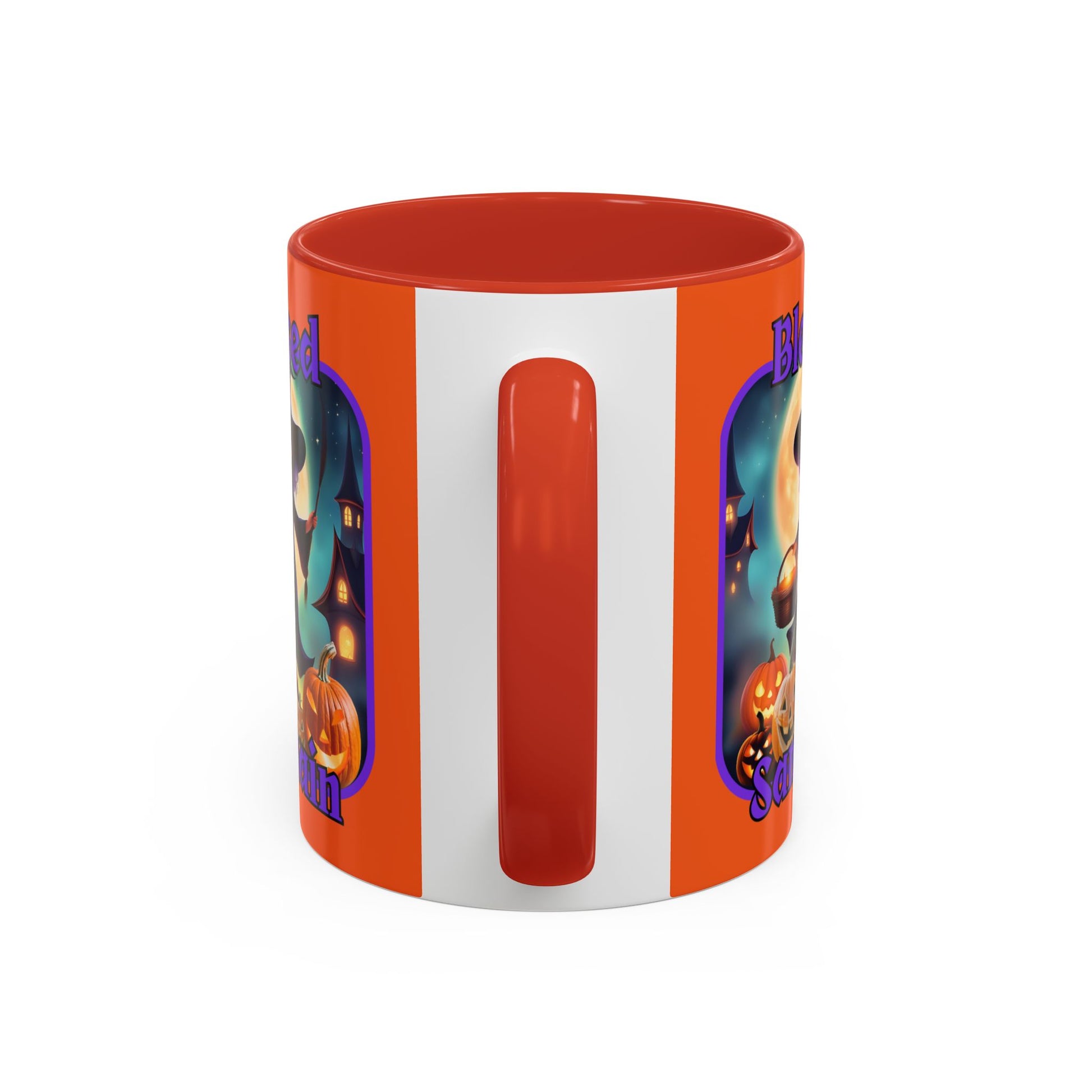 Also available with orange font: Blessed Samhain Little Witch Orange font Orange Accent Mug by CreepyCrafts.boo