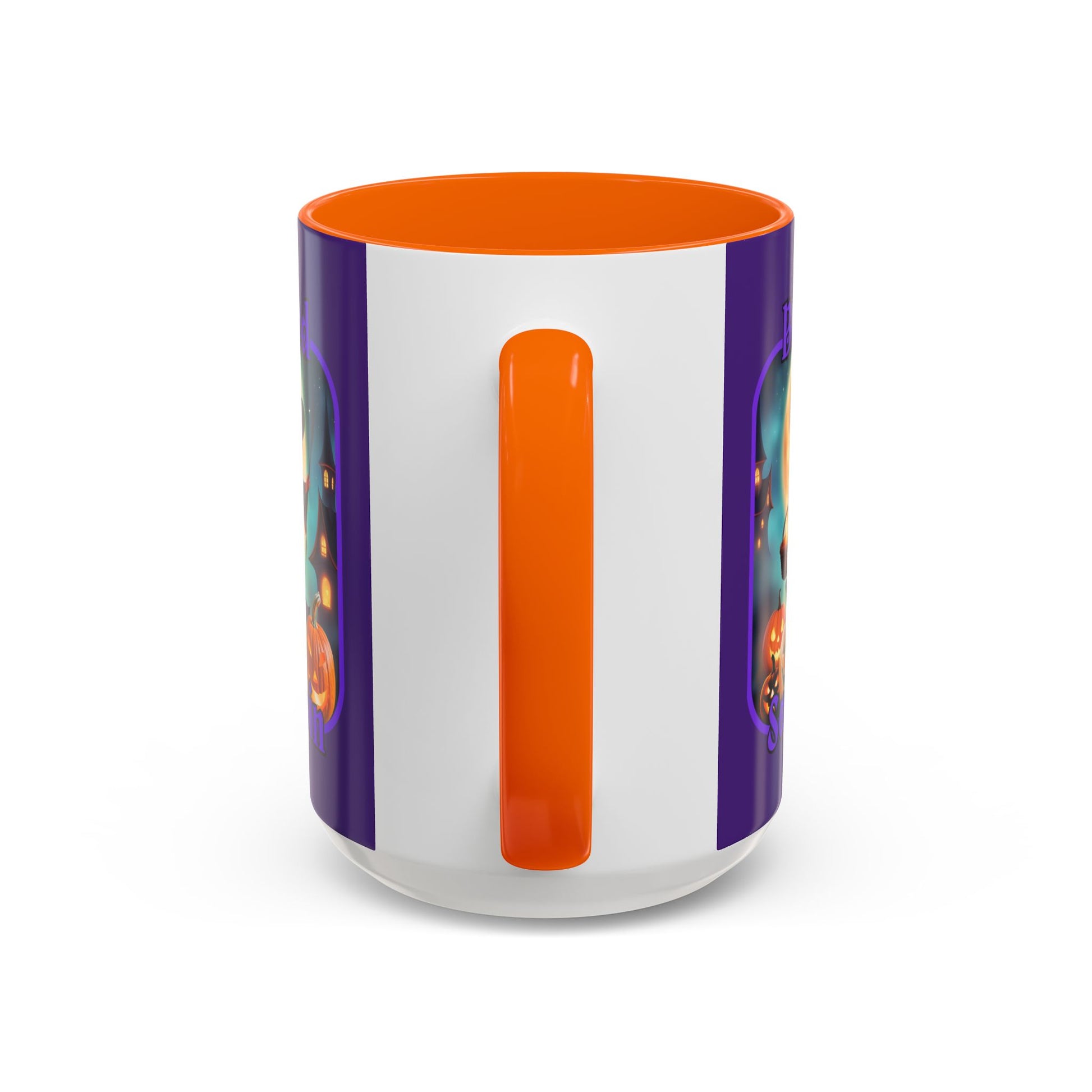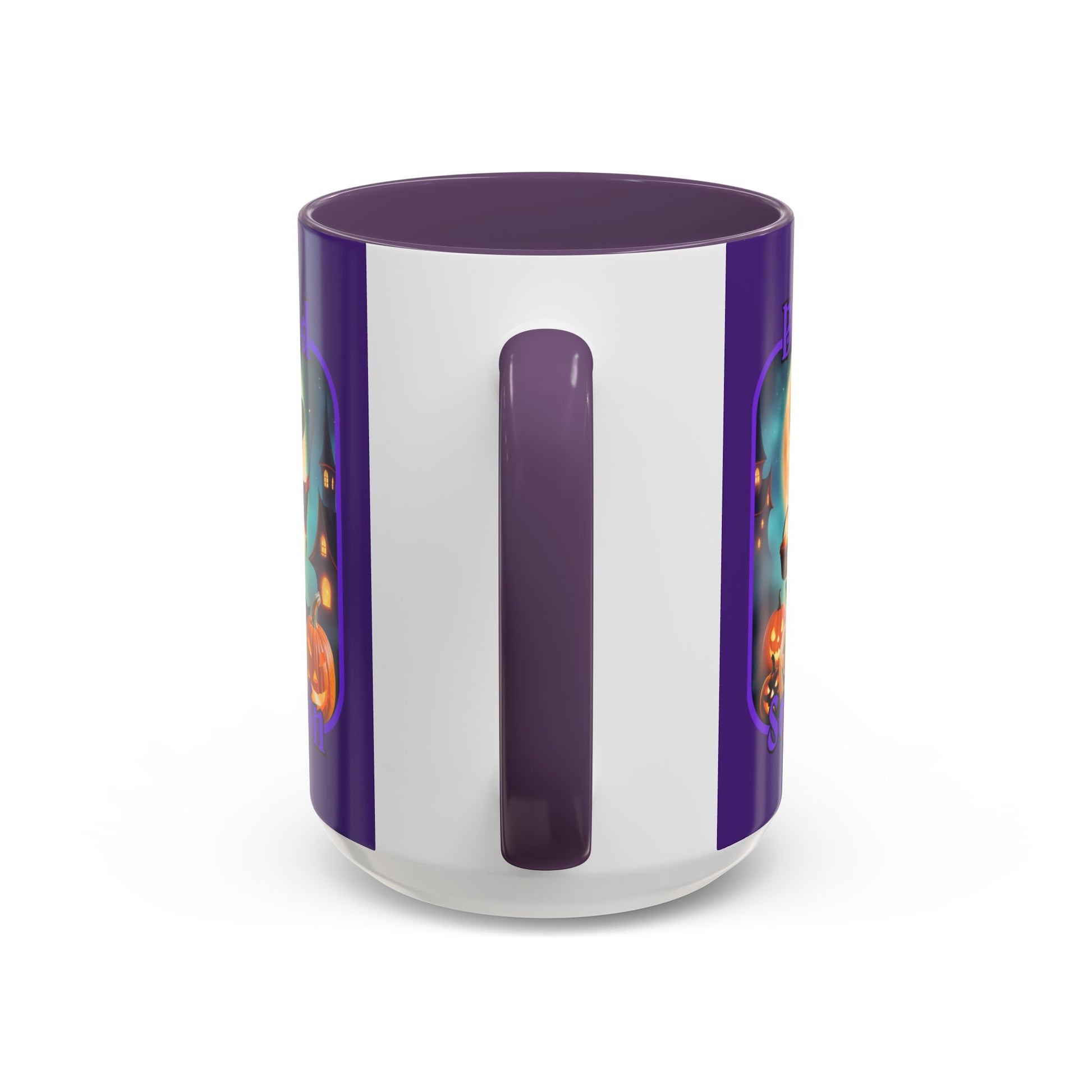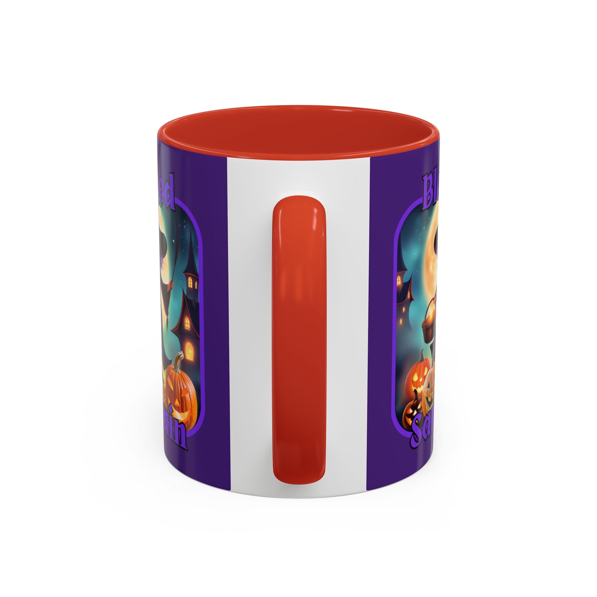 Blessed Samhain Little Witch Purple font Purple Accent Mug by CreepyCrafts.boo