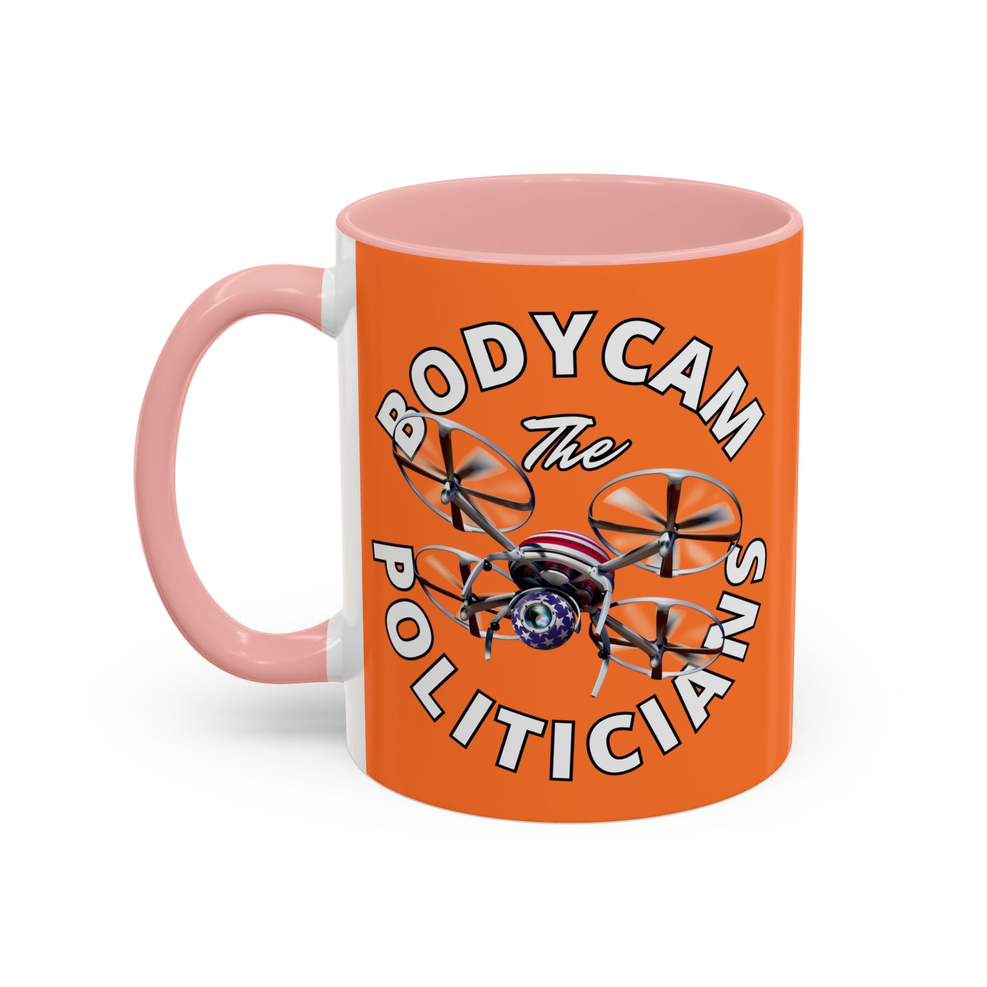 Bodycam the Politicians Drone Orange Accent Mug by cypherpunkgear.com