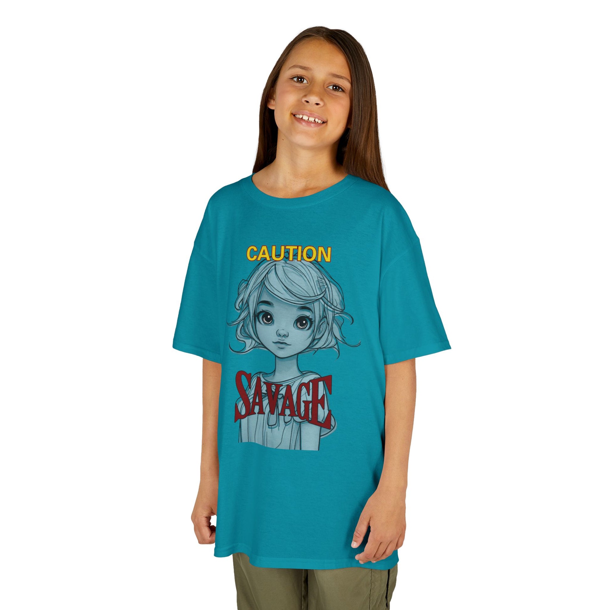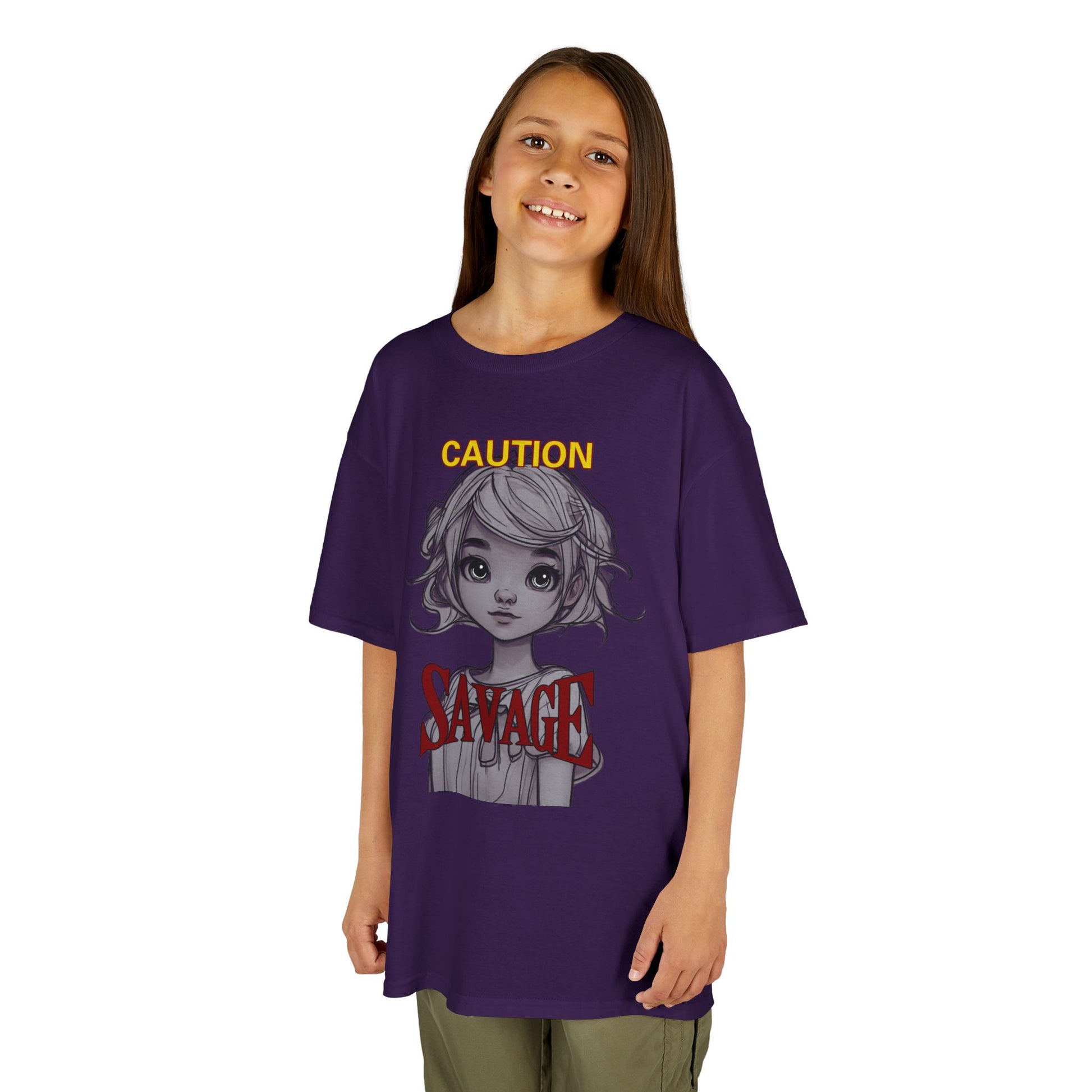 Caution: Small but Savage Kids Heavy Cotton Tee by cypherpunkgear.com