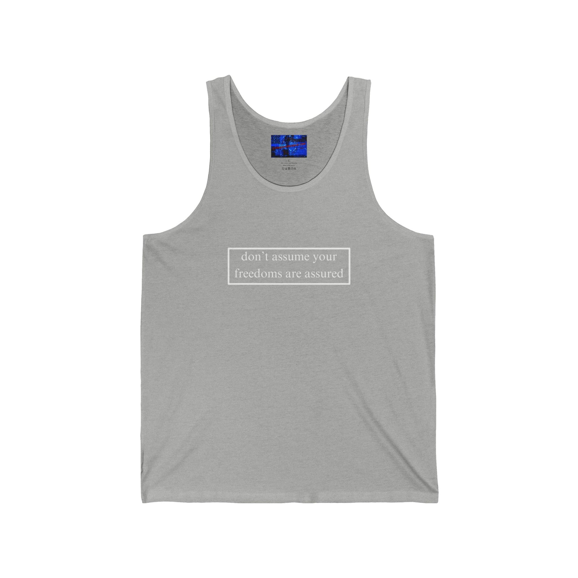 ¡No asumas que cypherpunkgear garantiza tus libertades! Camiseta sin mangas unisex