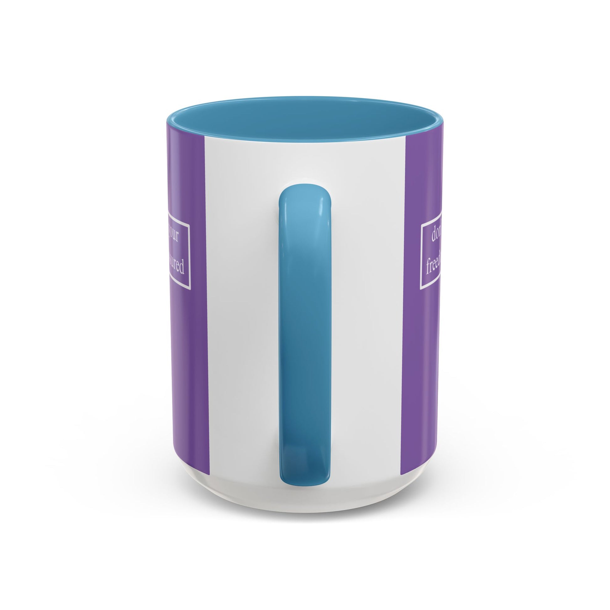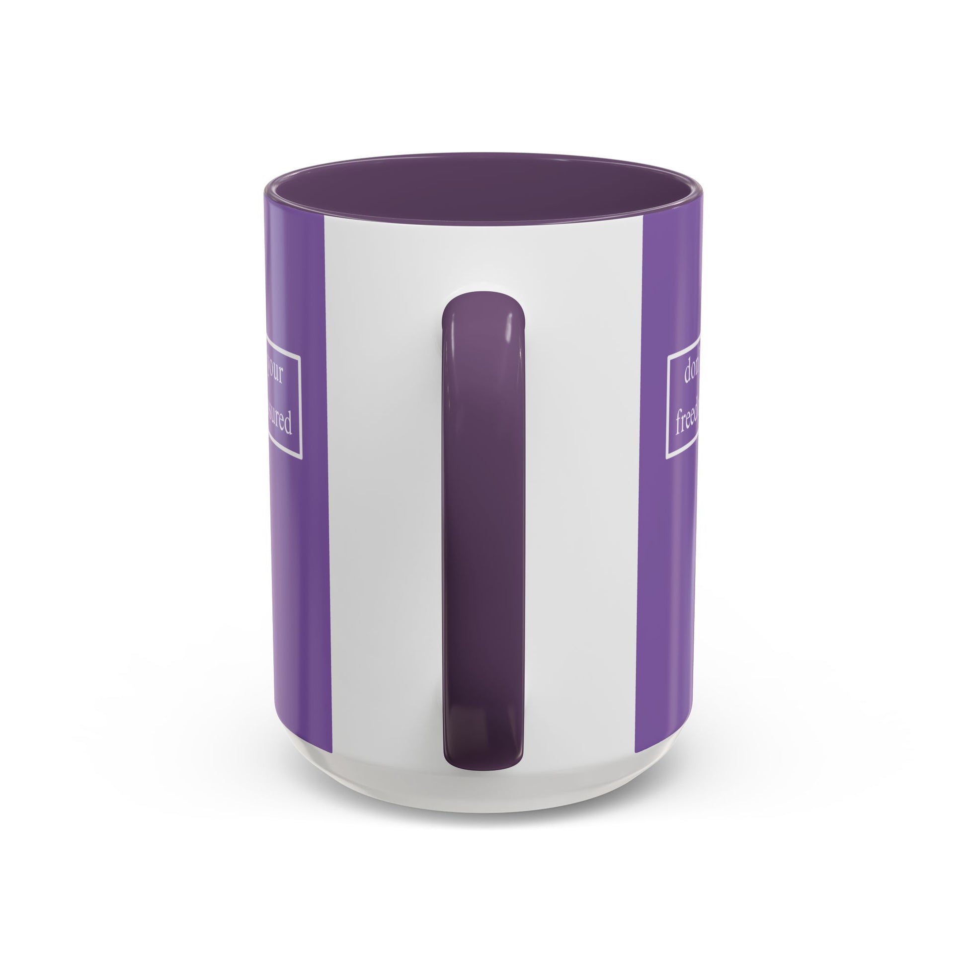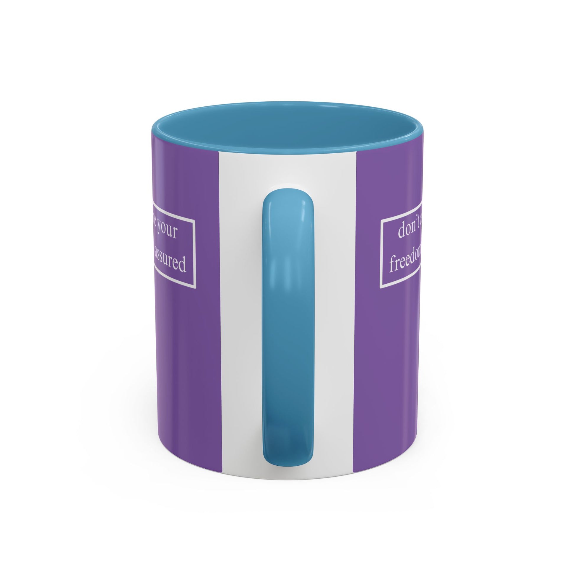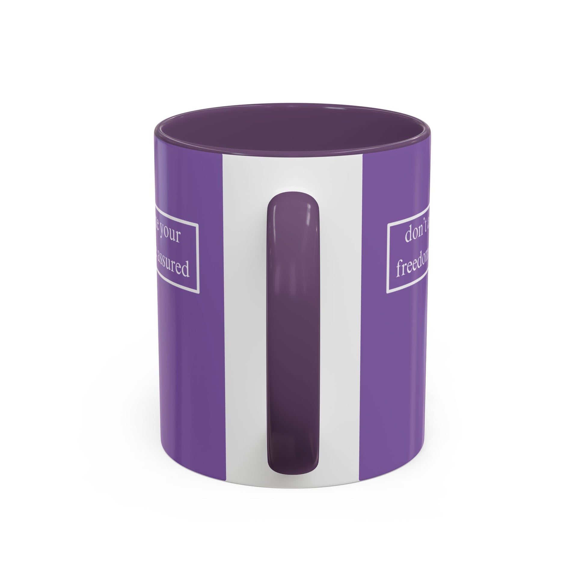 A simple but important message don't assume your freedoms are assured, White font, Light Purple Accent Mug by cypherpunkgear.com