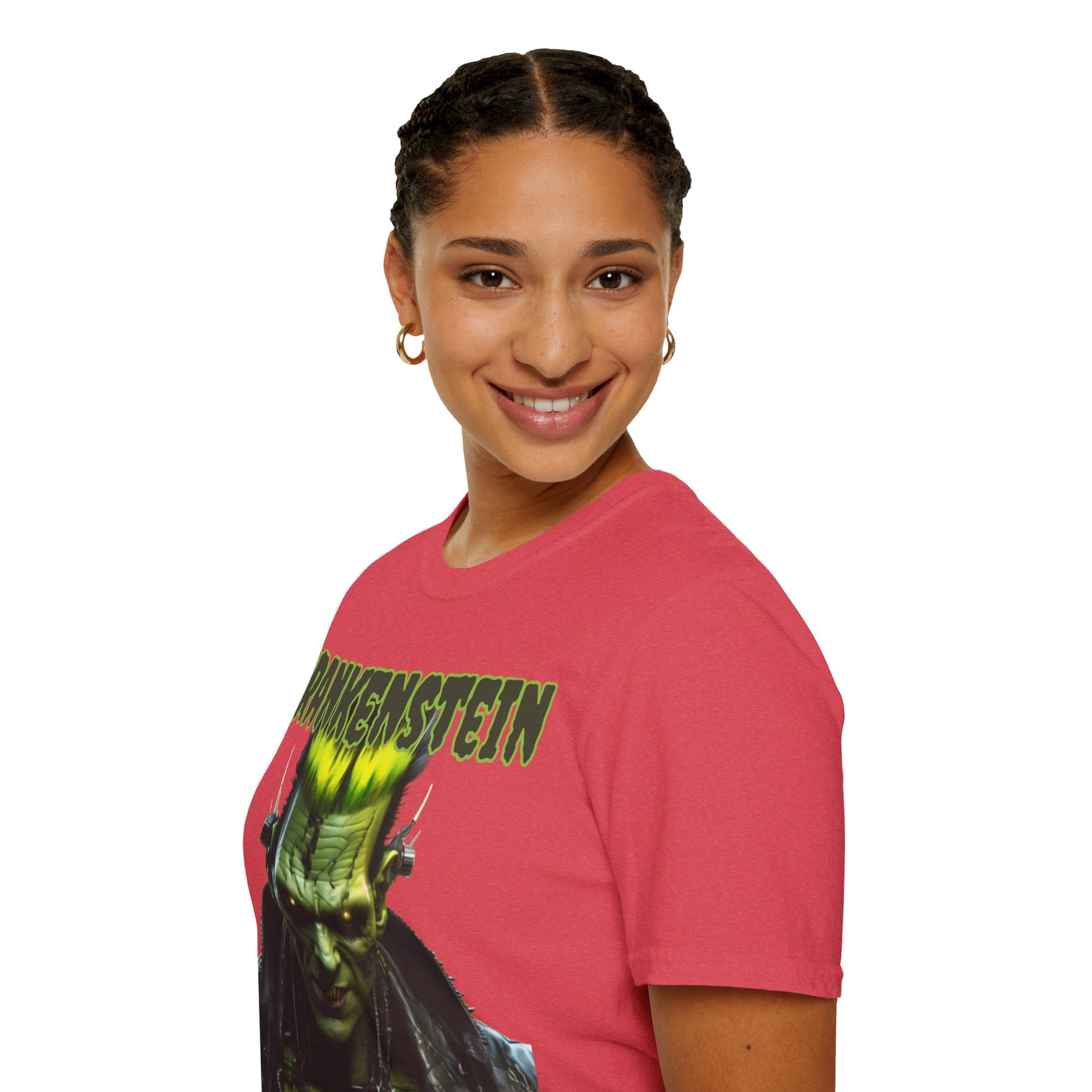 In the neon-lit depths of a cyberpunk city, Frankenstein's creature roams, kept alive by cybernetic enhancements. A hulking figure of flesh and tech, his glowing eyes pierce the smog as he haunts the shadows, a relic of forgotten experiments, both feared and mournful in this cold, dystopian world. Add a touch of cyberpunk to Halloween with the Frankenstein Lives Light colors Unisex T-Shirt by CreepyCrafts.boo