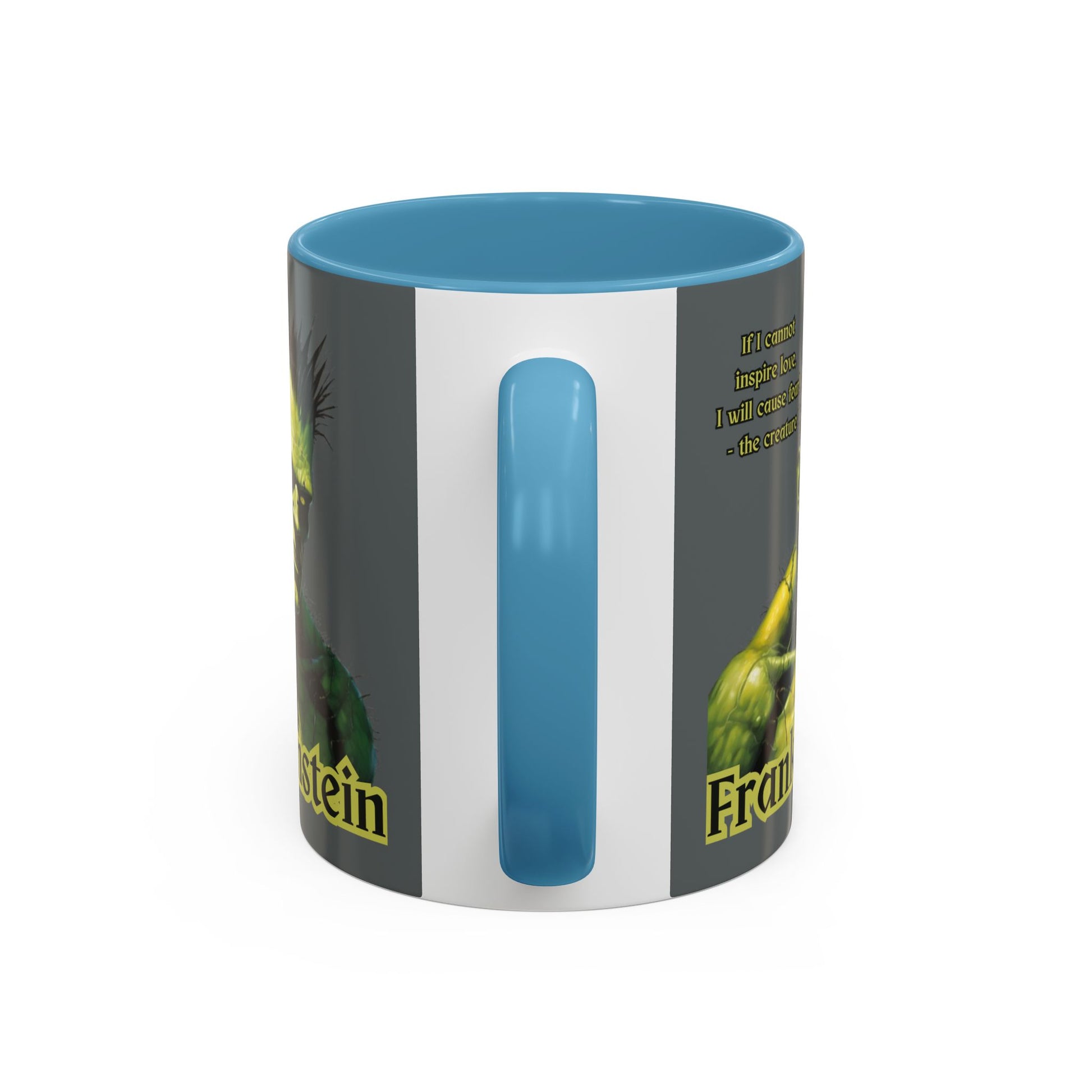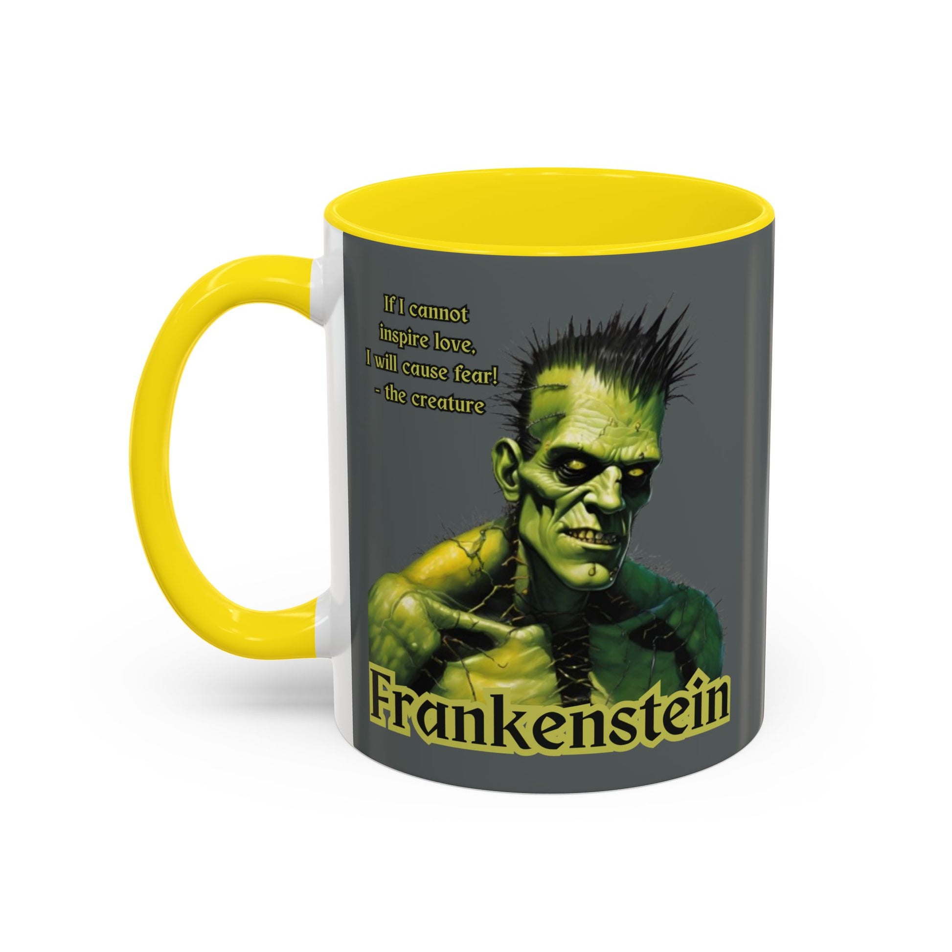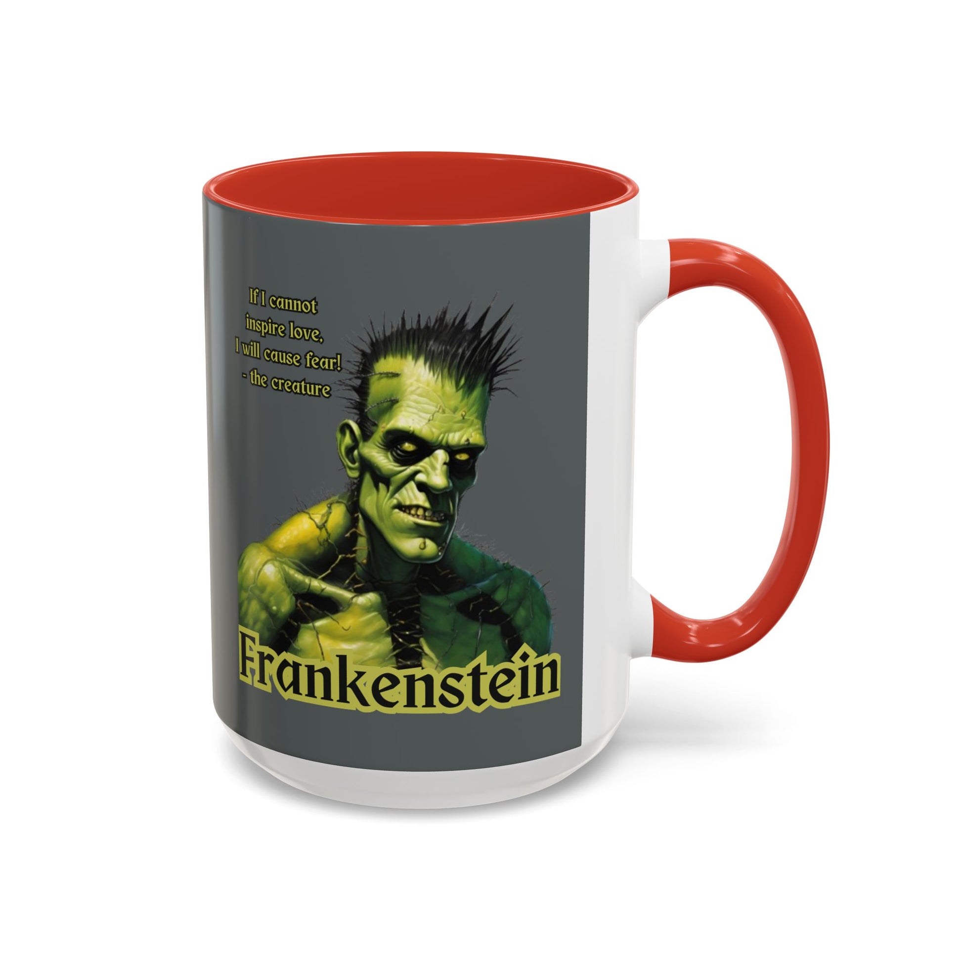 The detail that truly makes "Frankenstein" a horror story, is that, "the creature" was highly intelligent...trapped in "a figure hideously deformed and loathsome." Order yours today: Frankenstein's Creature Accent Mug by CreepyCrafts.boo