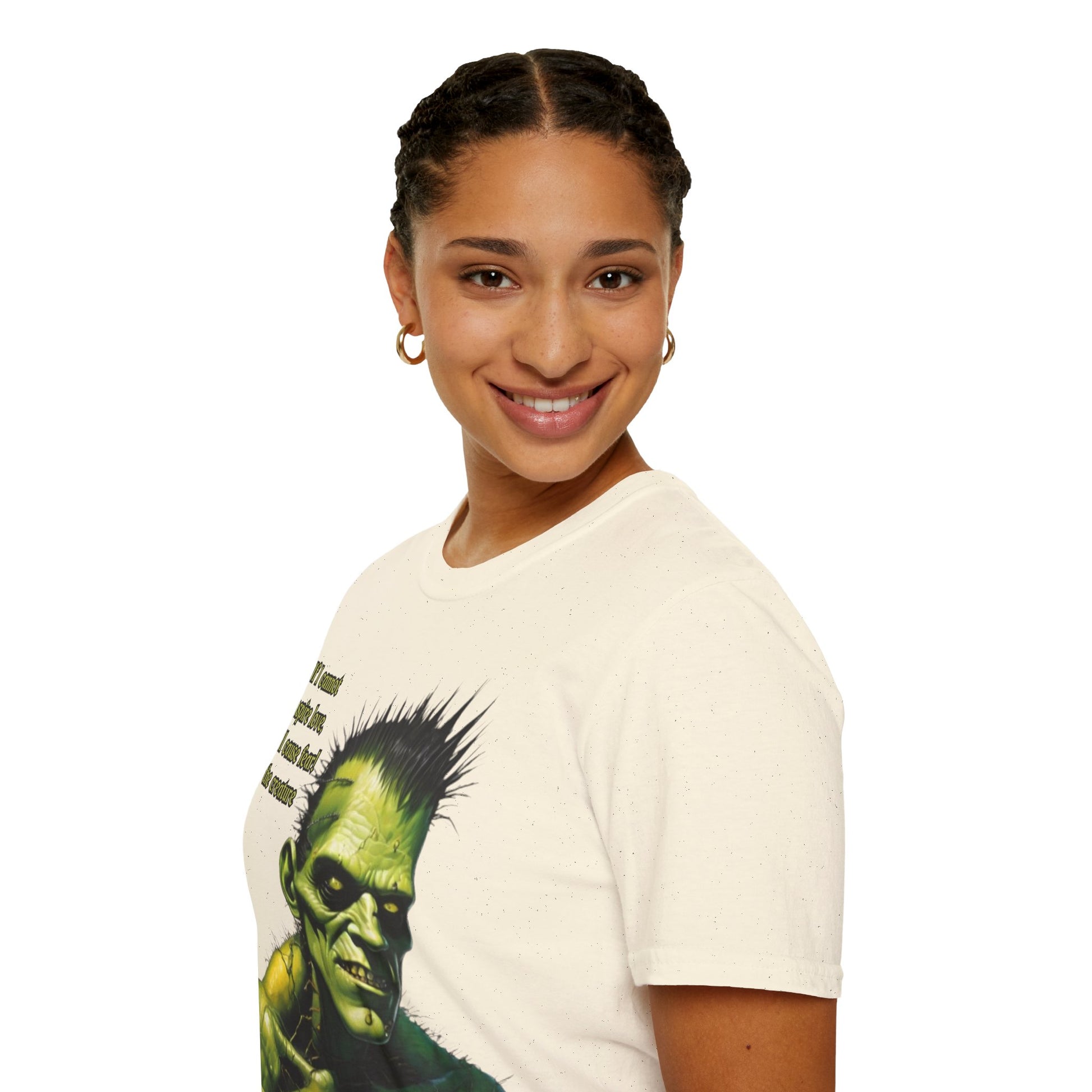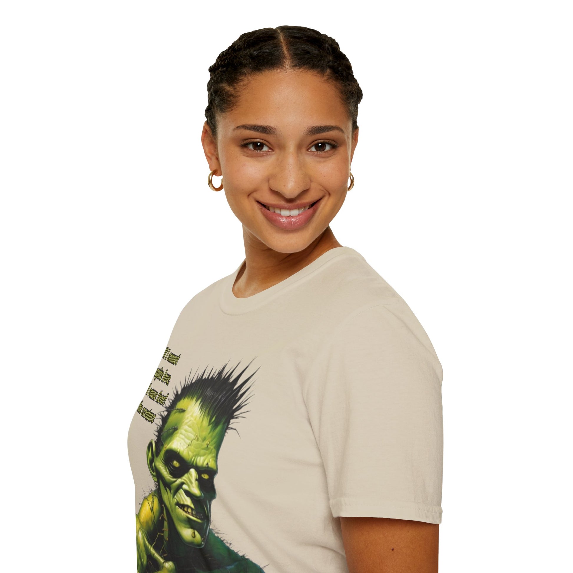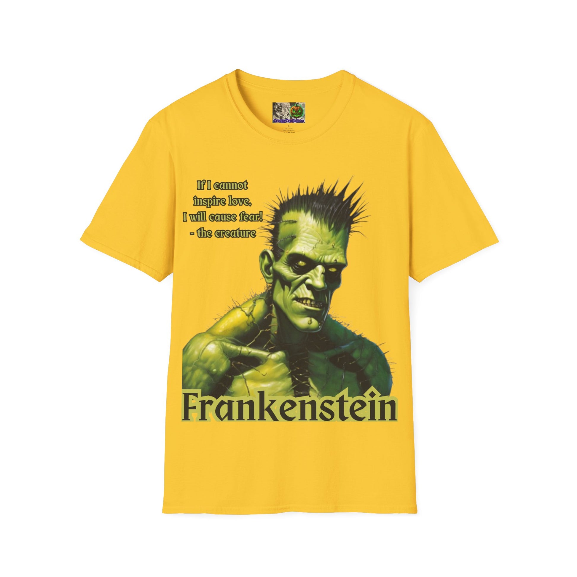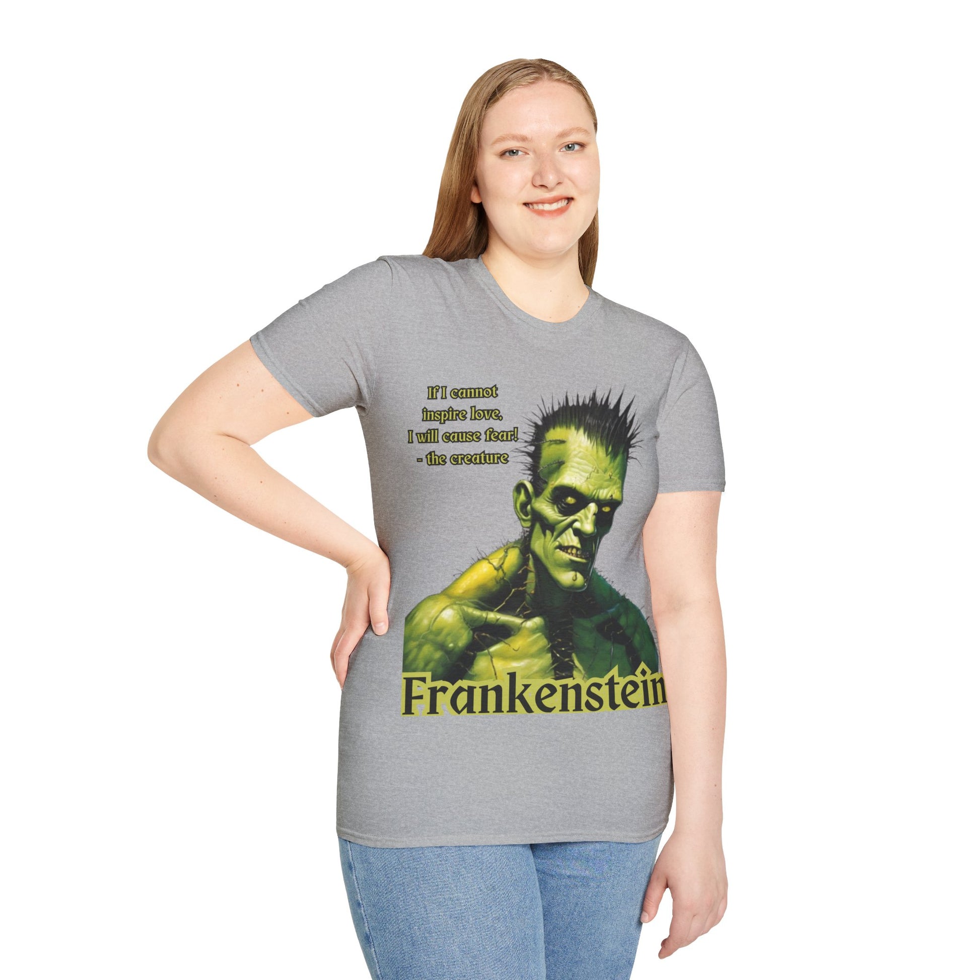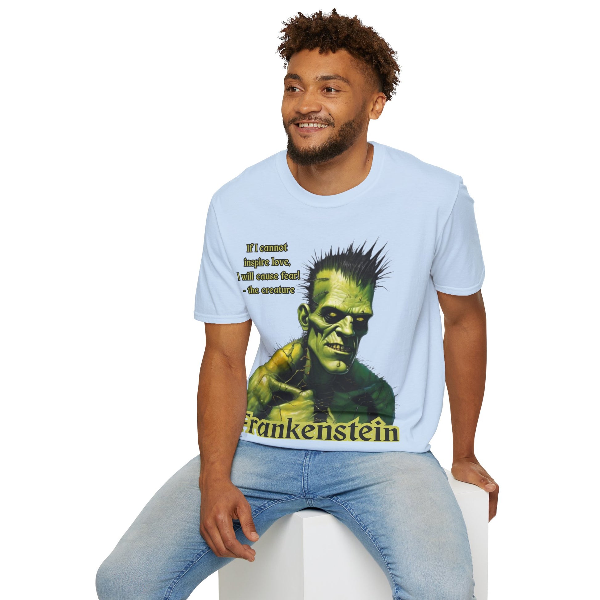 The detail that truly makes "Frankenstein" a horror story, is that, "the creature" was highly intelligent...trapped in "a figure hideously deformed and loathsome." Order yours today: Frankenstein's Creature Light colors Unisex T-Shirt by CreepyCrafts.boo