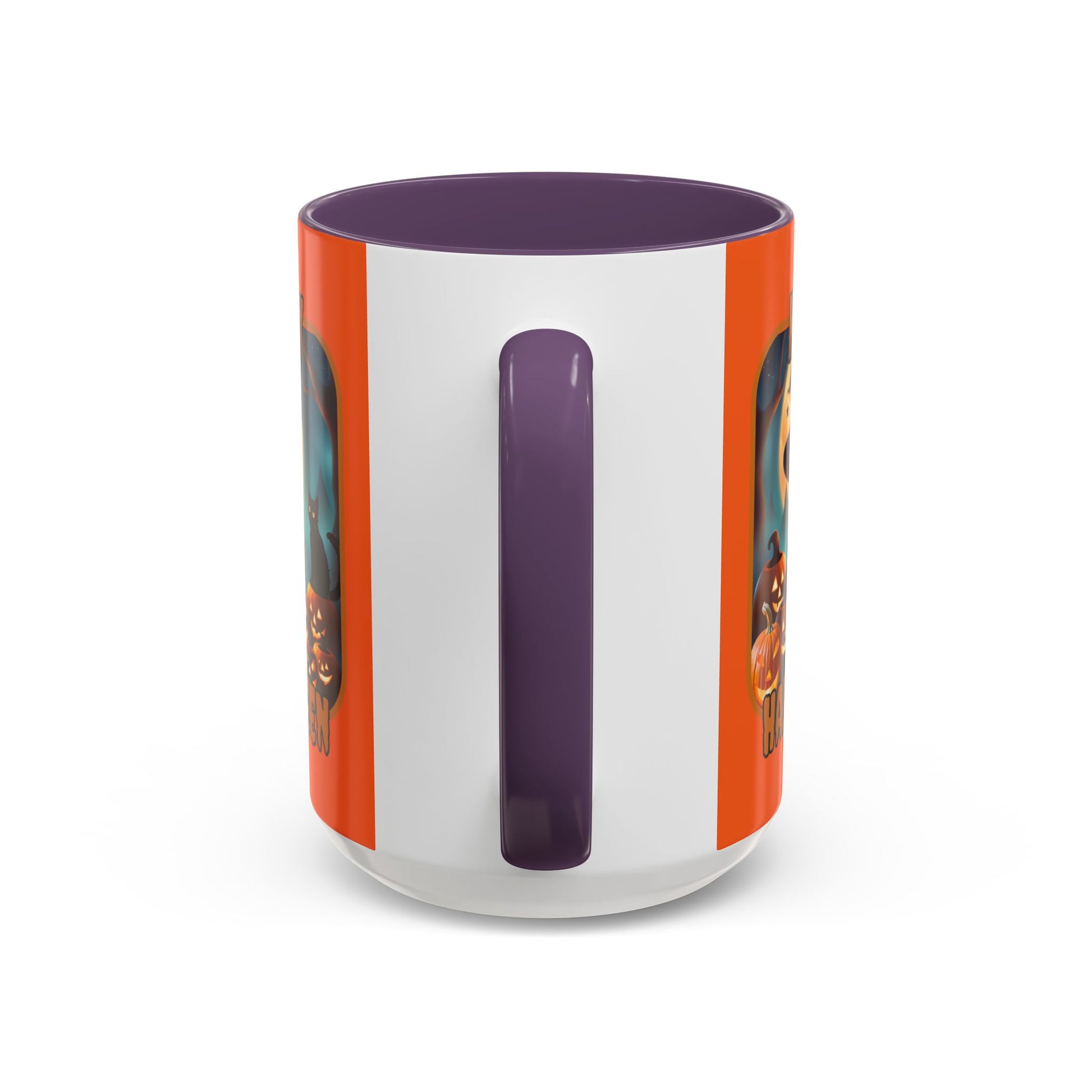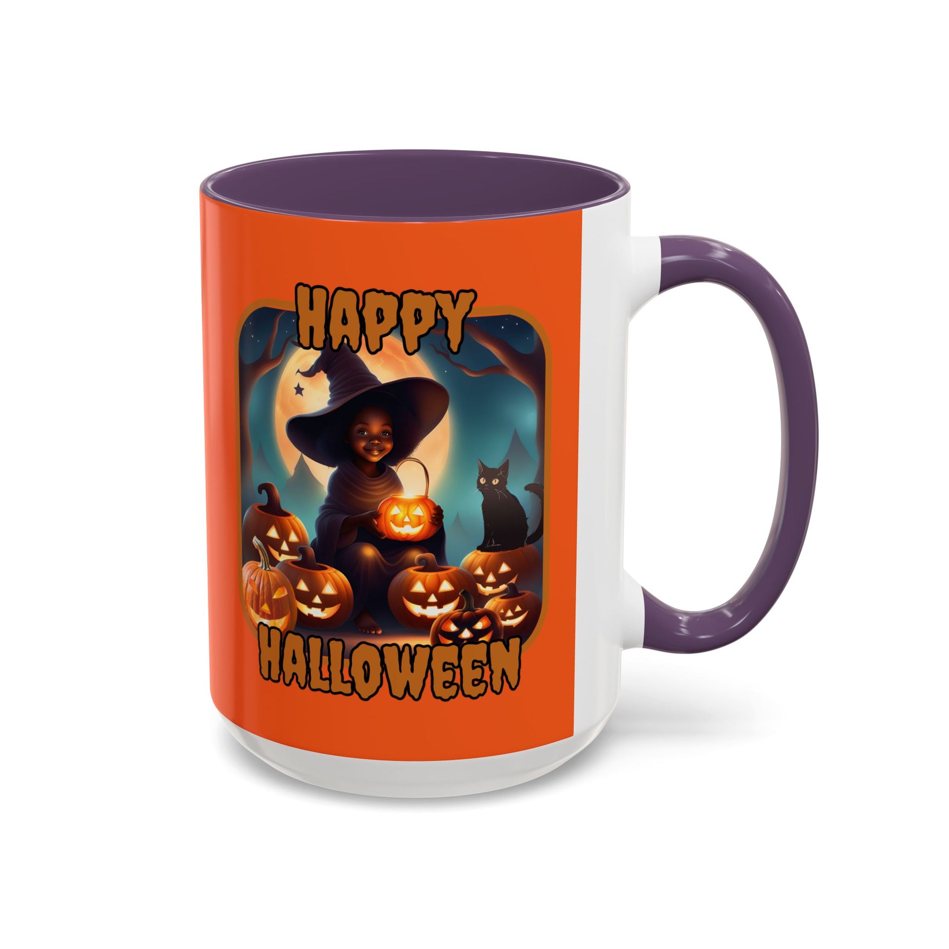 Also available with purple font: Happy Halloween Cute Witch Purple font Orange Accent Mug by CreepyCrafts.boo