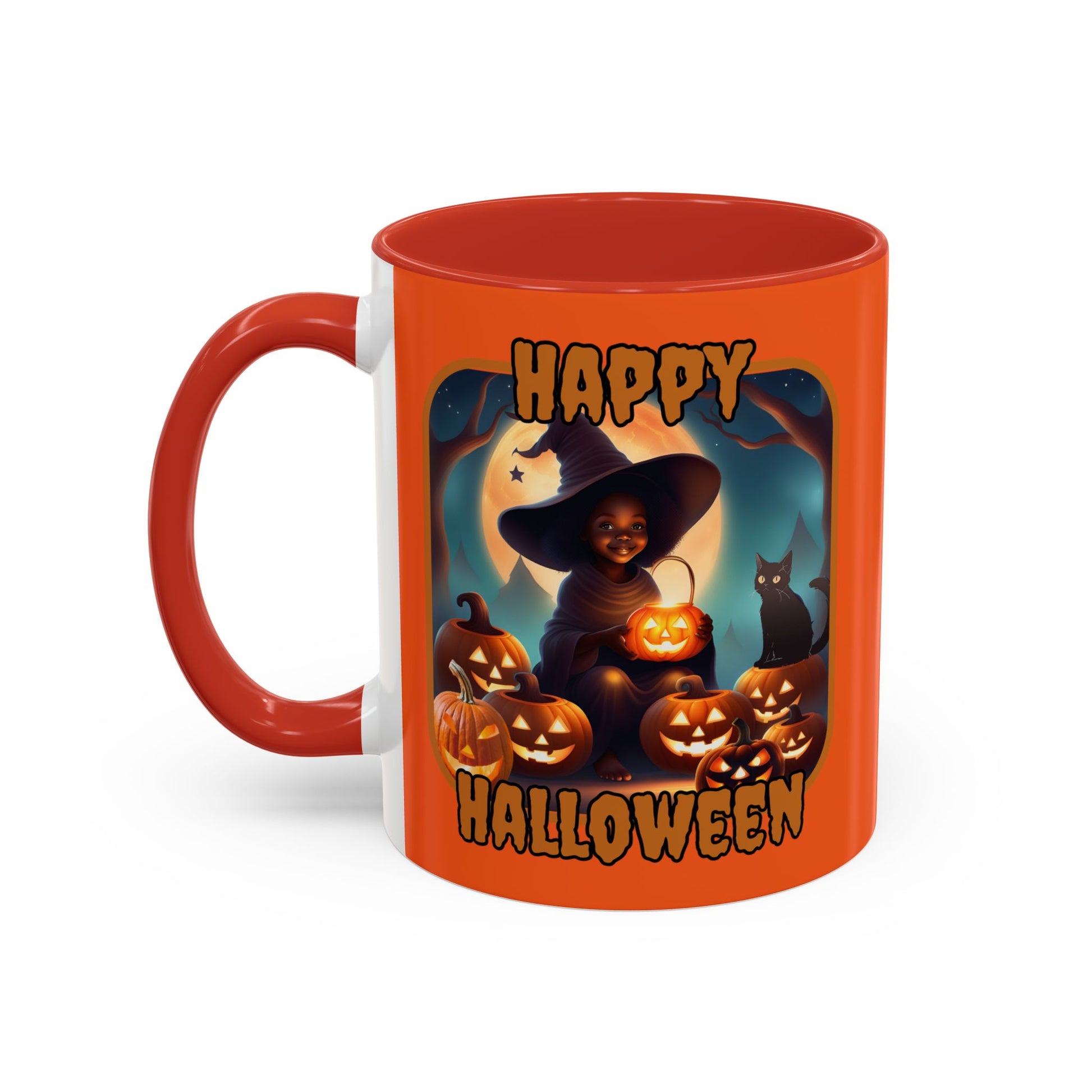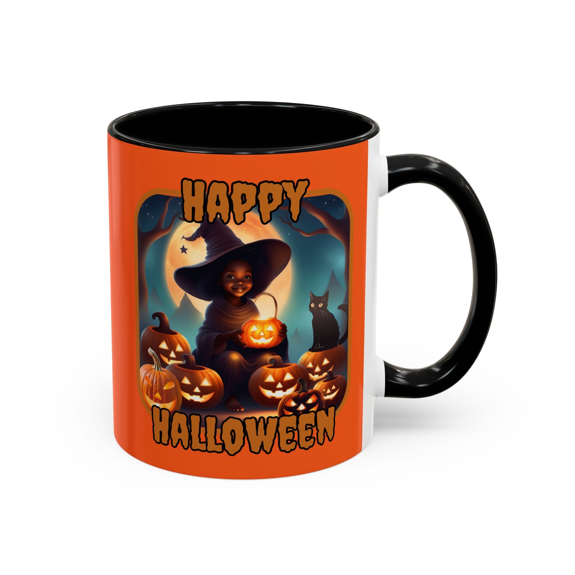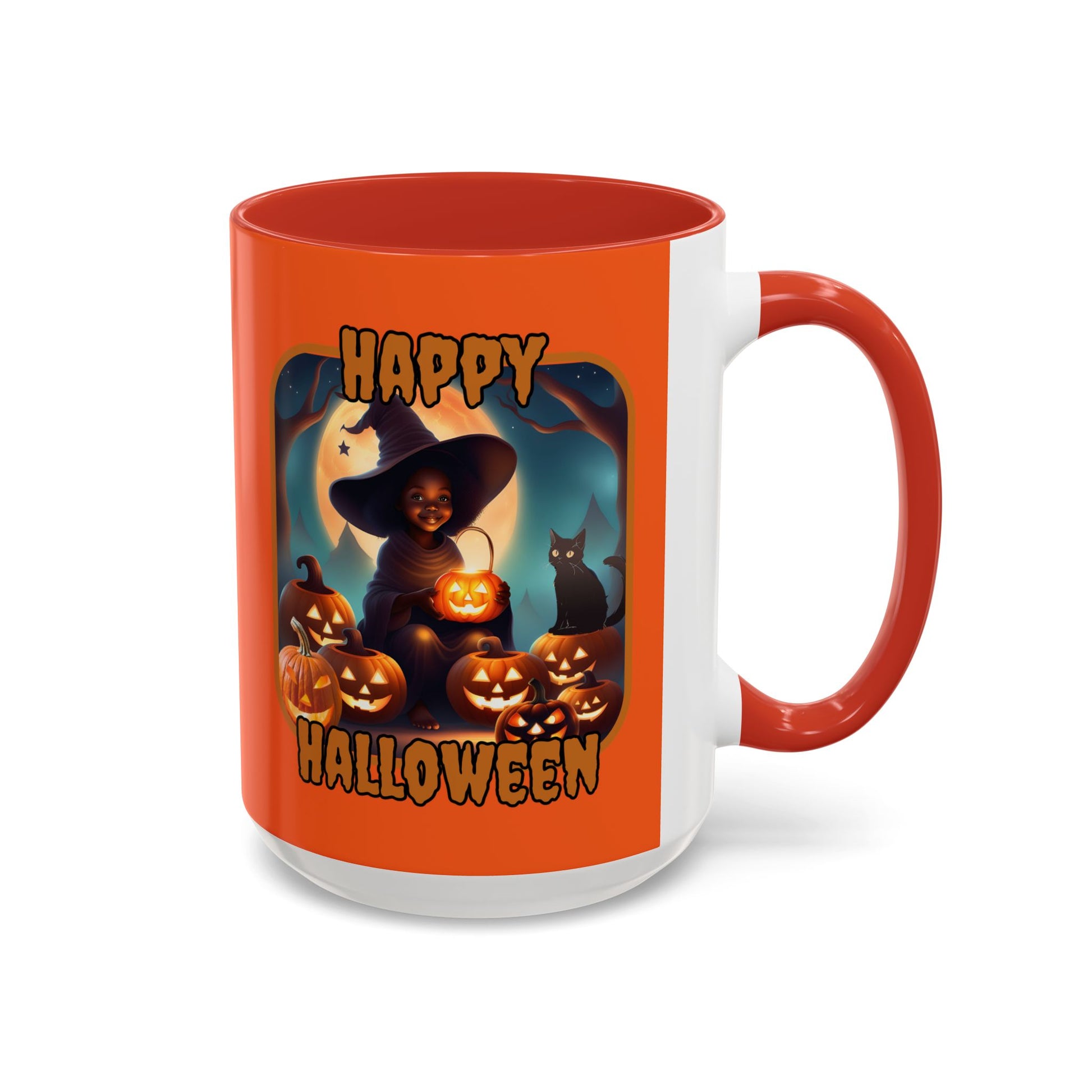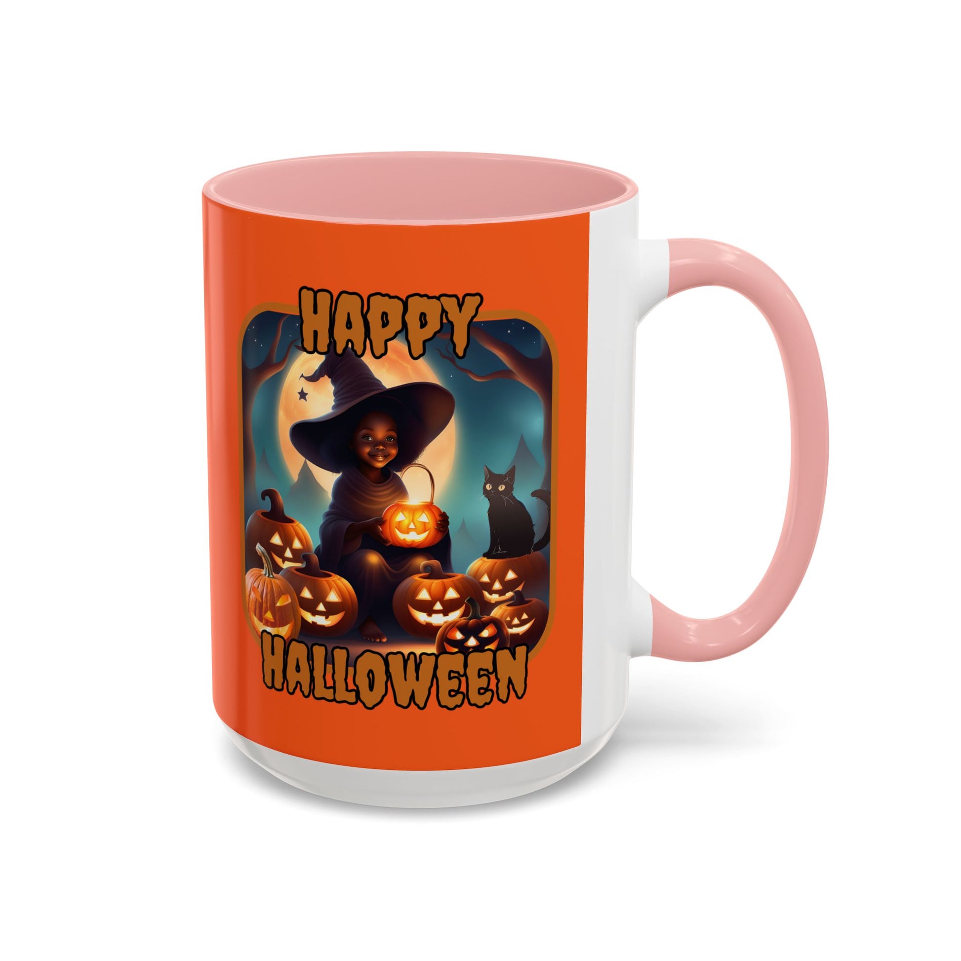 Happy Halloween Cute Witch Orange font Orange Accent Mug by CreepyCrafts.boo