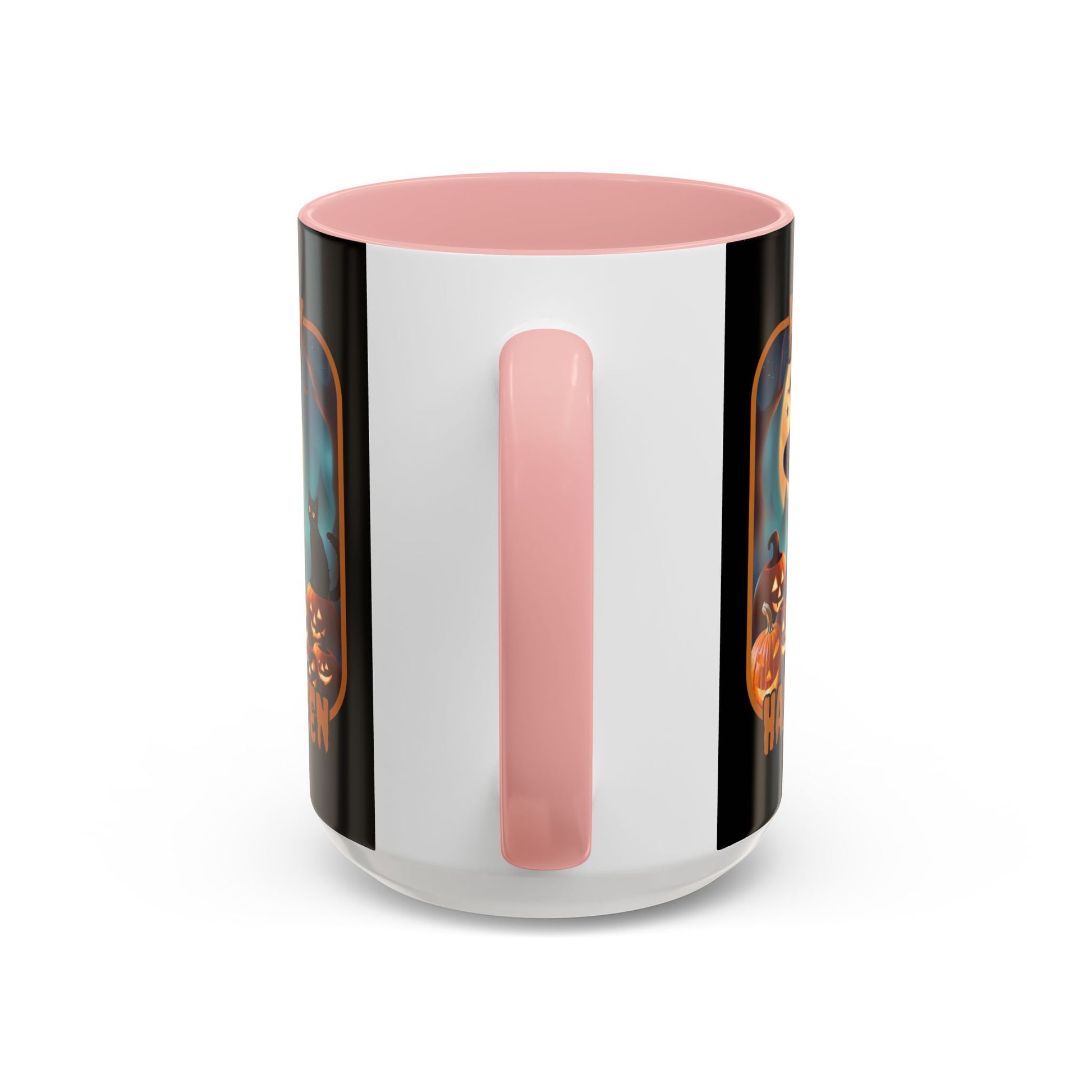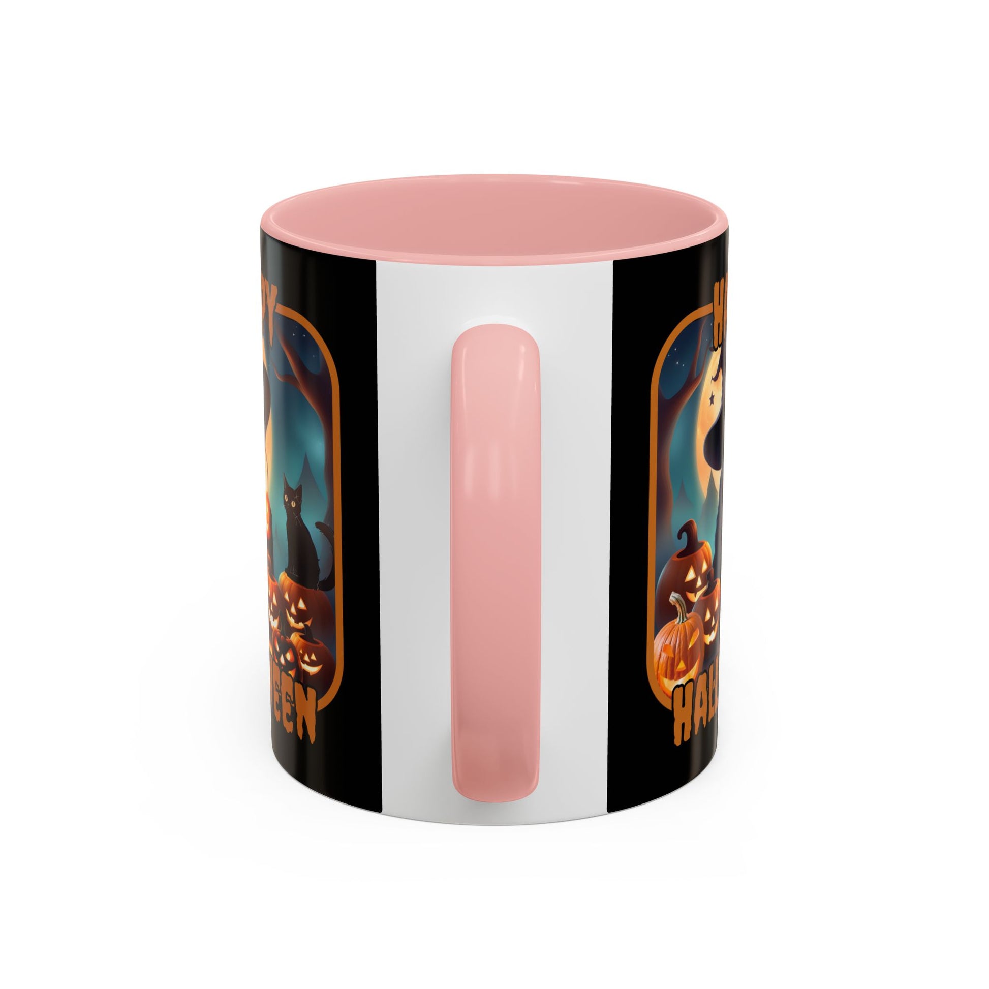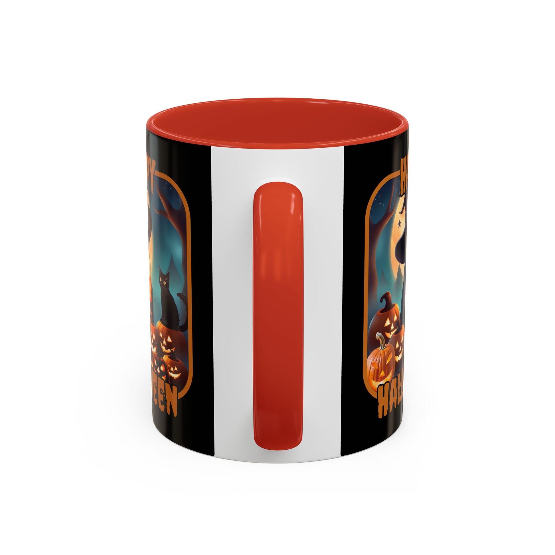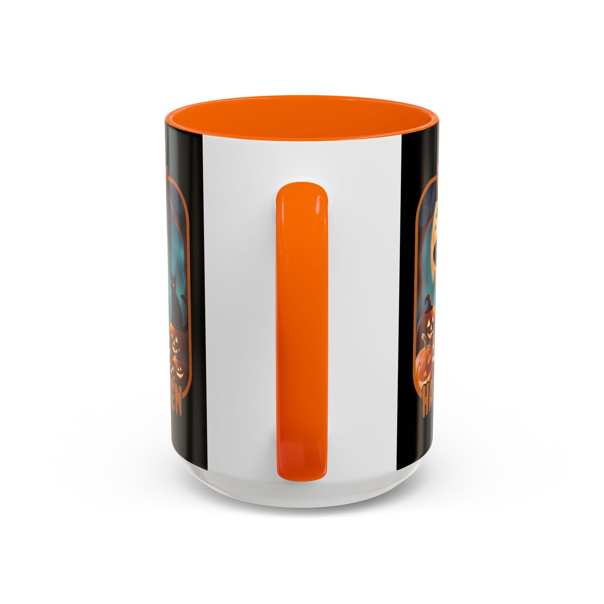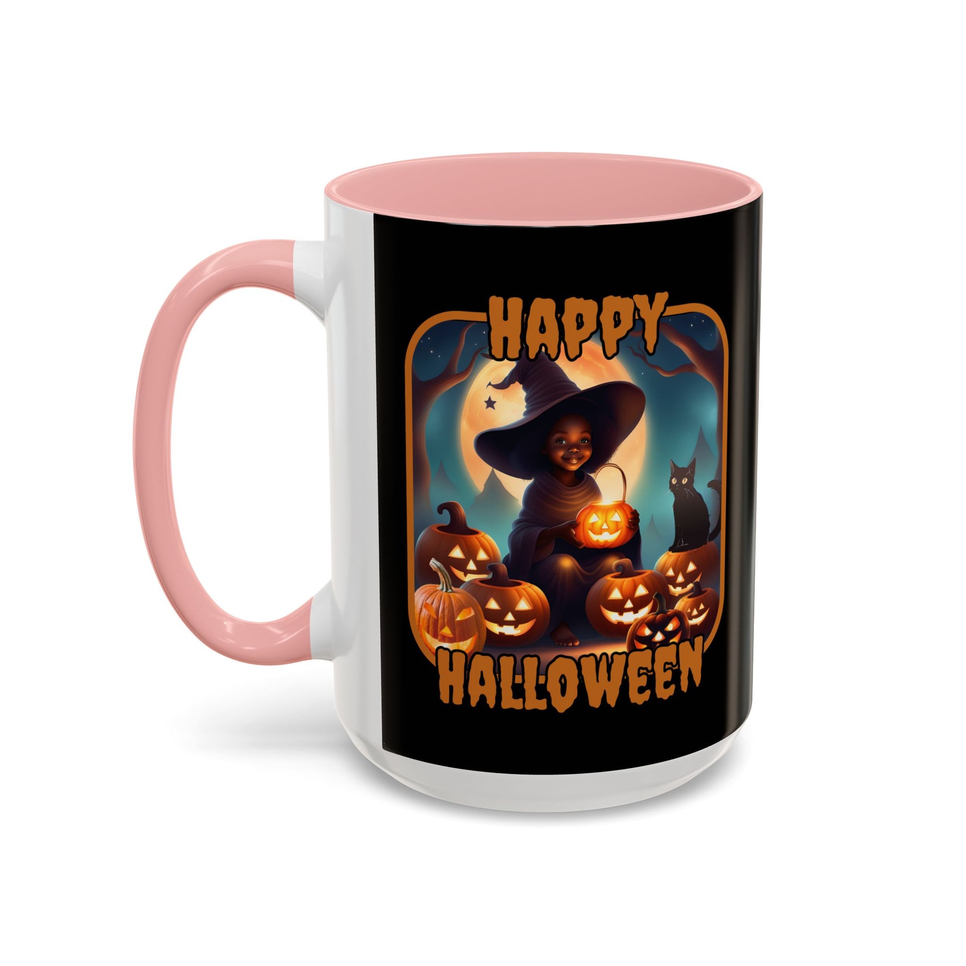 Happy Halloween Cute Witch Orange font Black Accent Mug by CreepyCrafts.boo