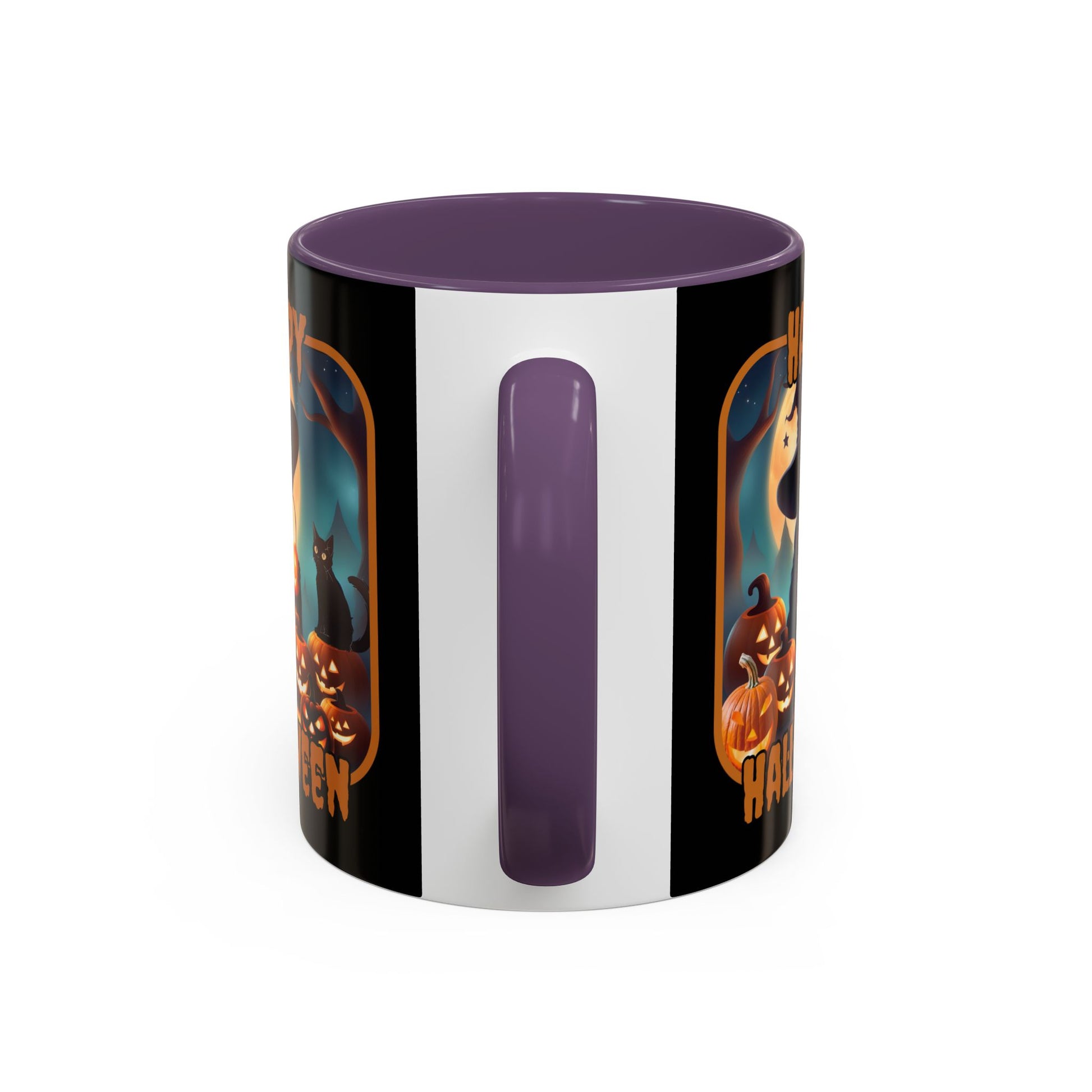 Also available with purple font: Happy Halloween Cute Witch Purple font Black Accent Mug by CreepyCrafts.boo