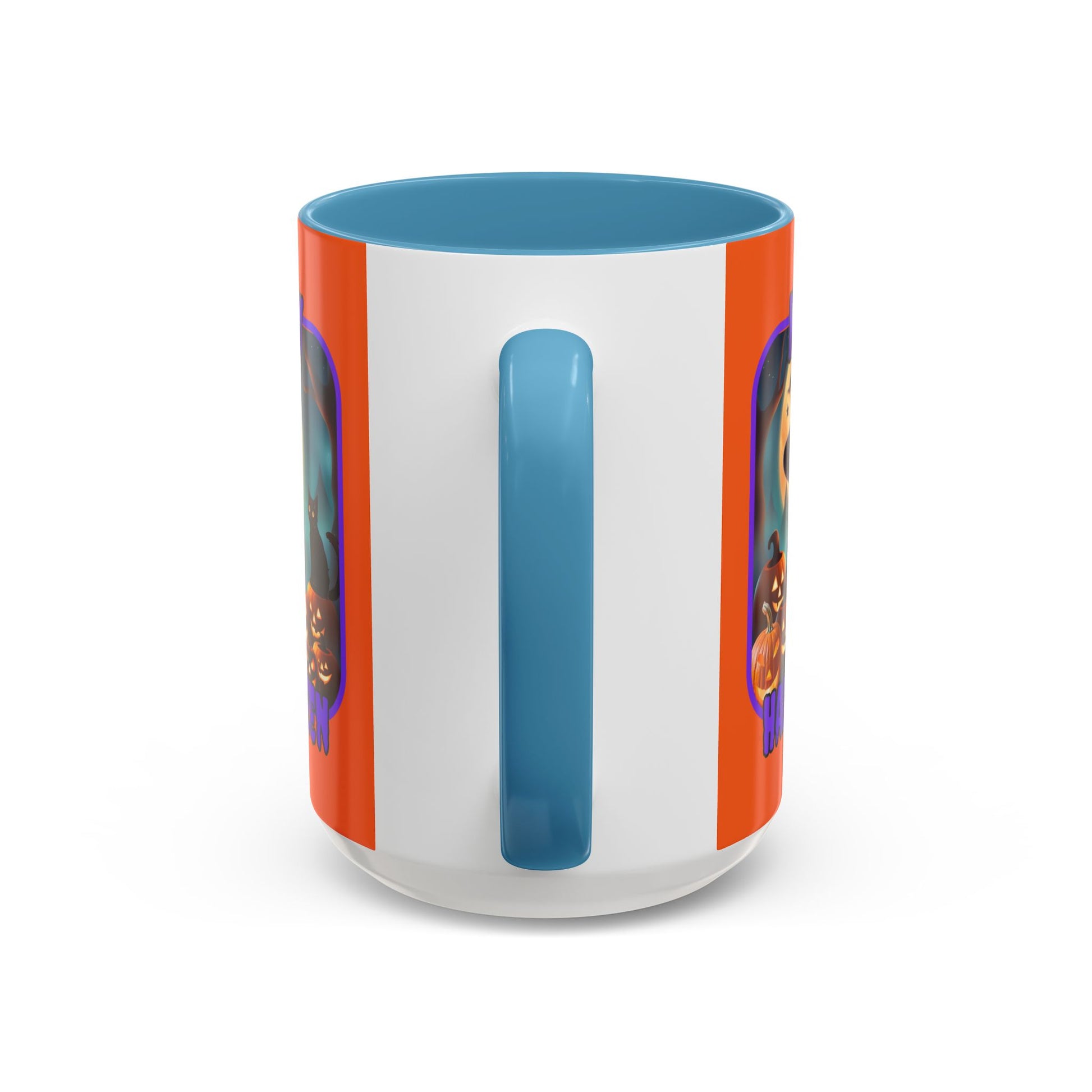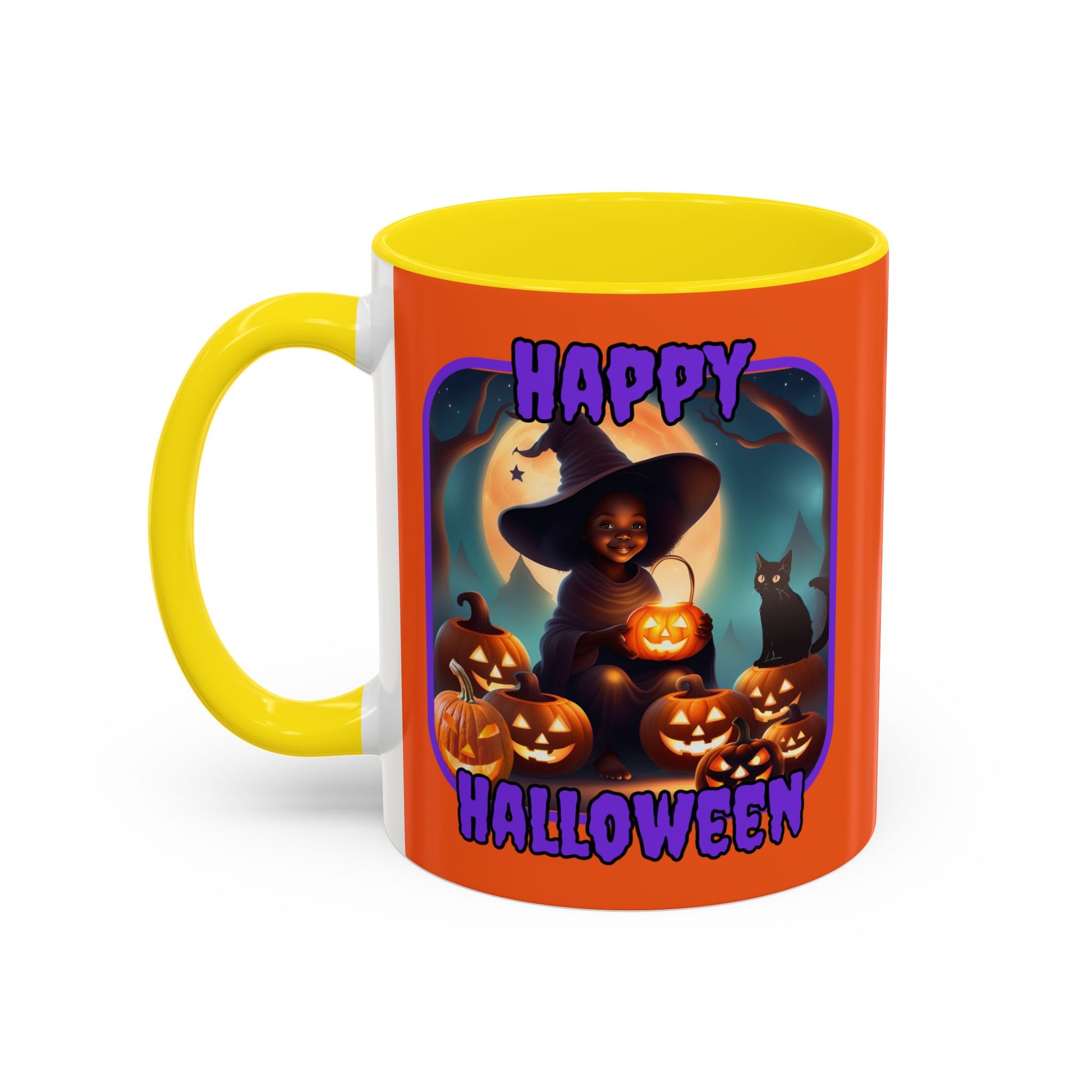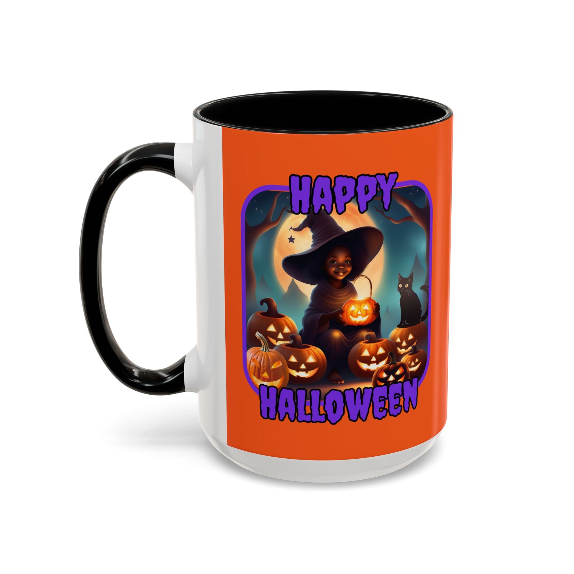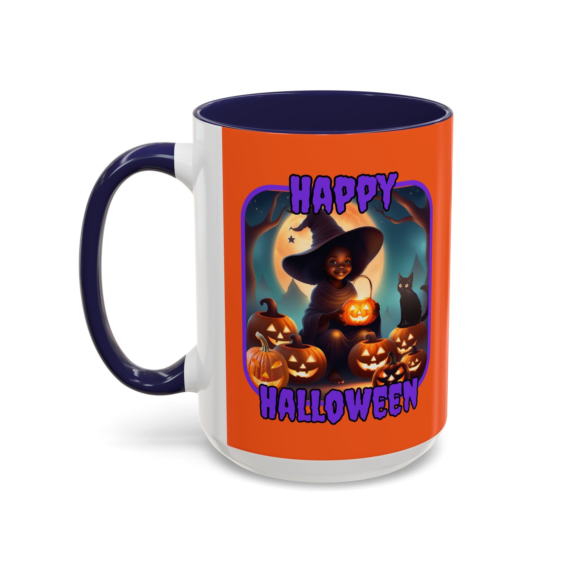 Also available with orange font: Happy Halloween Cute Witch Orange font Orange Accent Mug by CreepyCrafts.boo