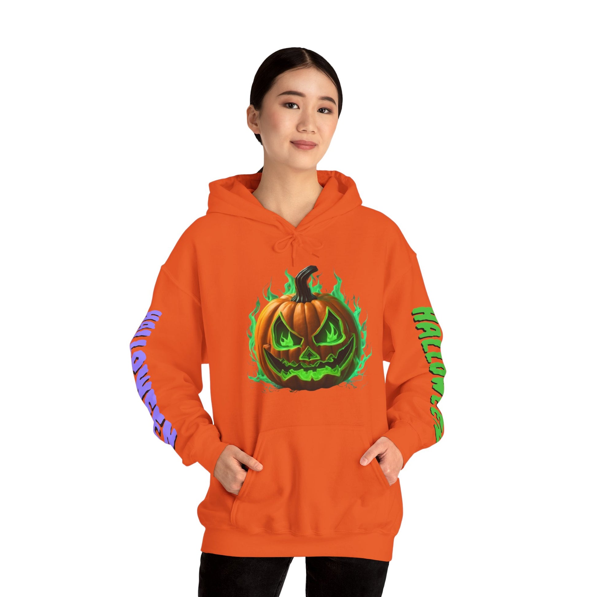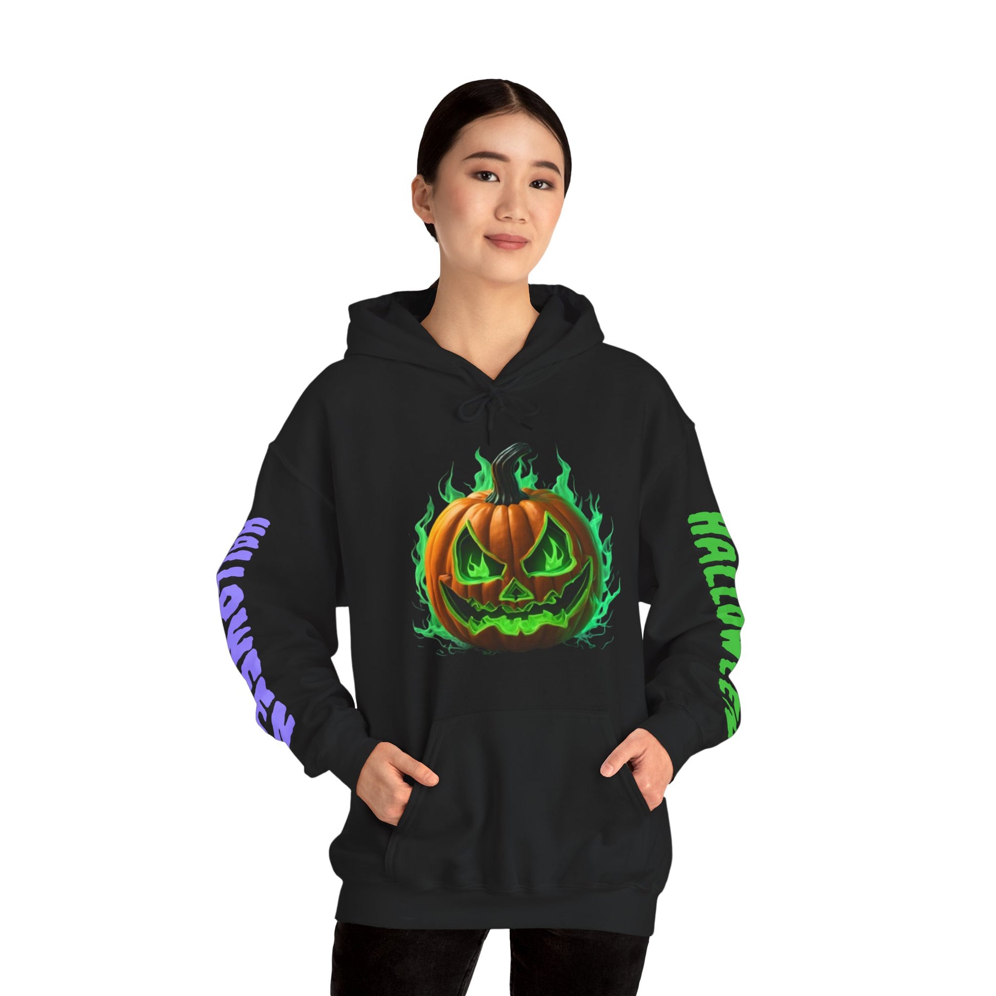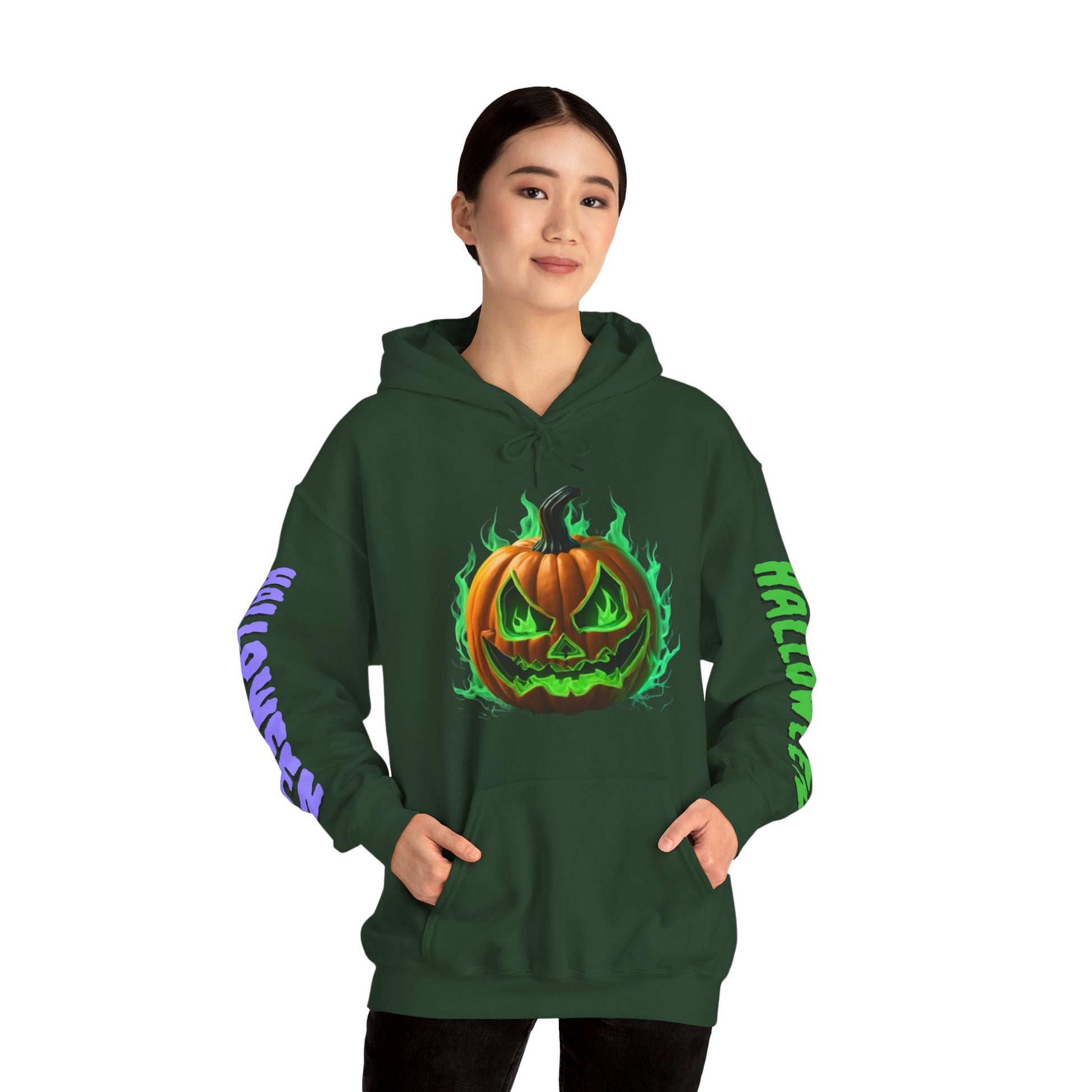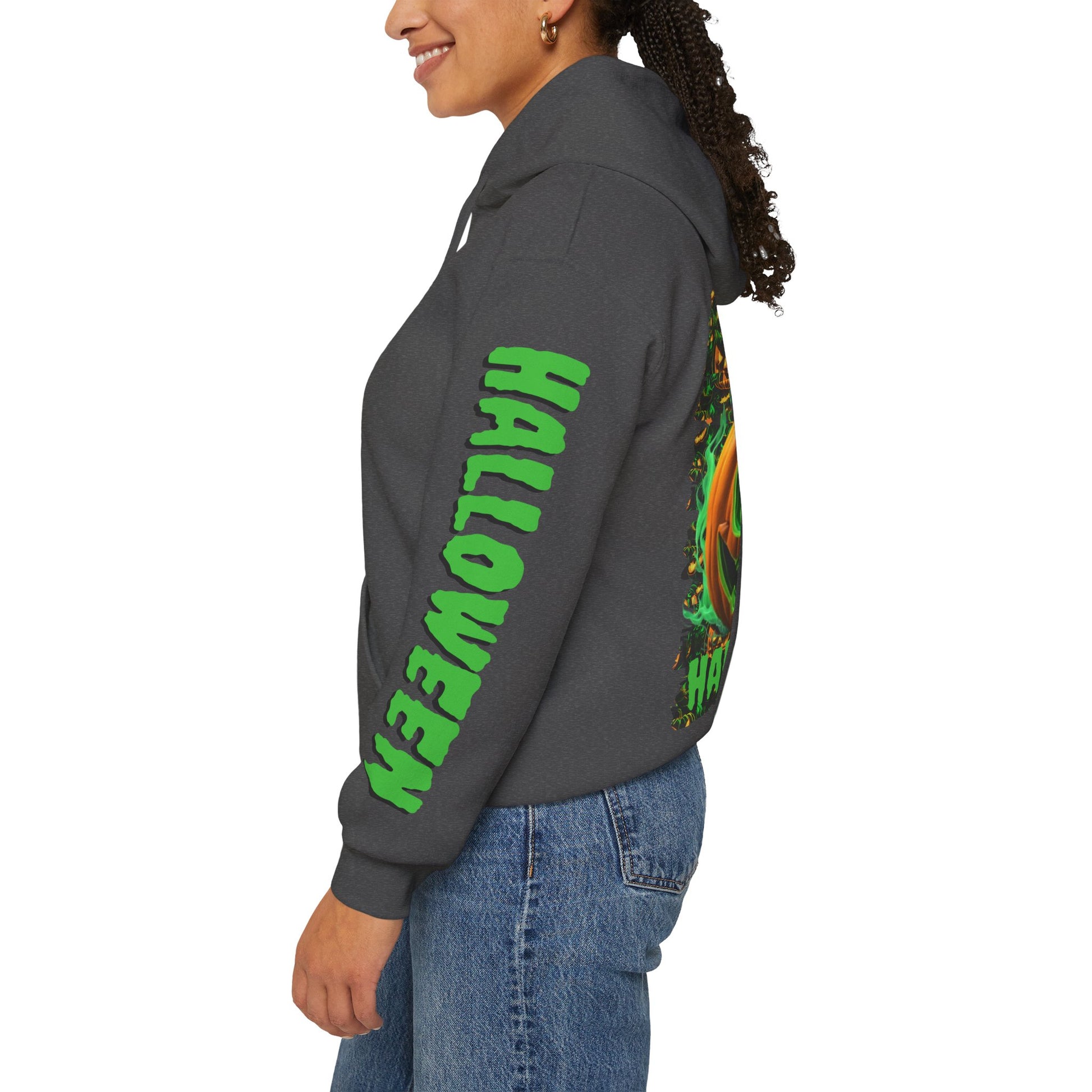 Happy Halloween Green Jack Hoodie Unisex Heavy Blend™ Hooded Sweatshirt by CreepyCrafts.boo