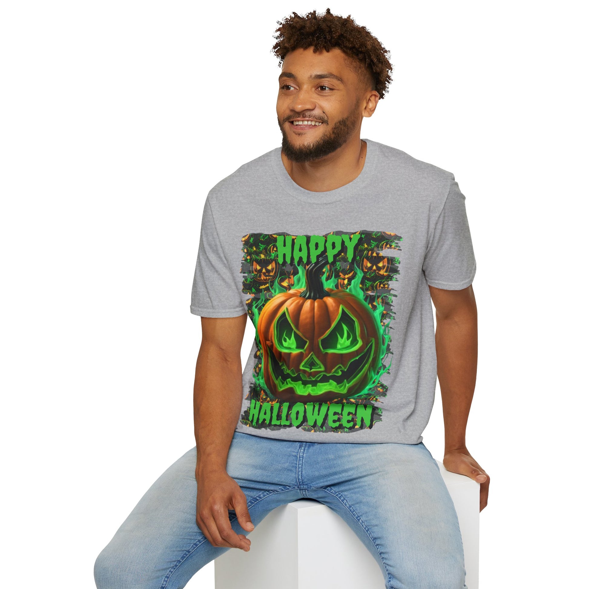 Happy Halloween Green Jack Light colors Unisex T-Shirt by CreepyCrafts.boo