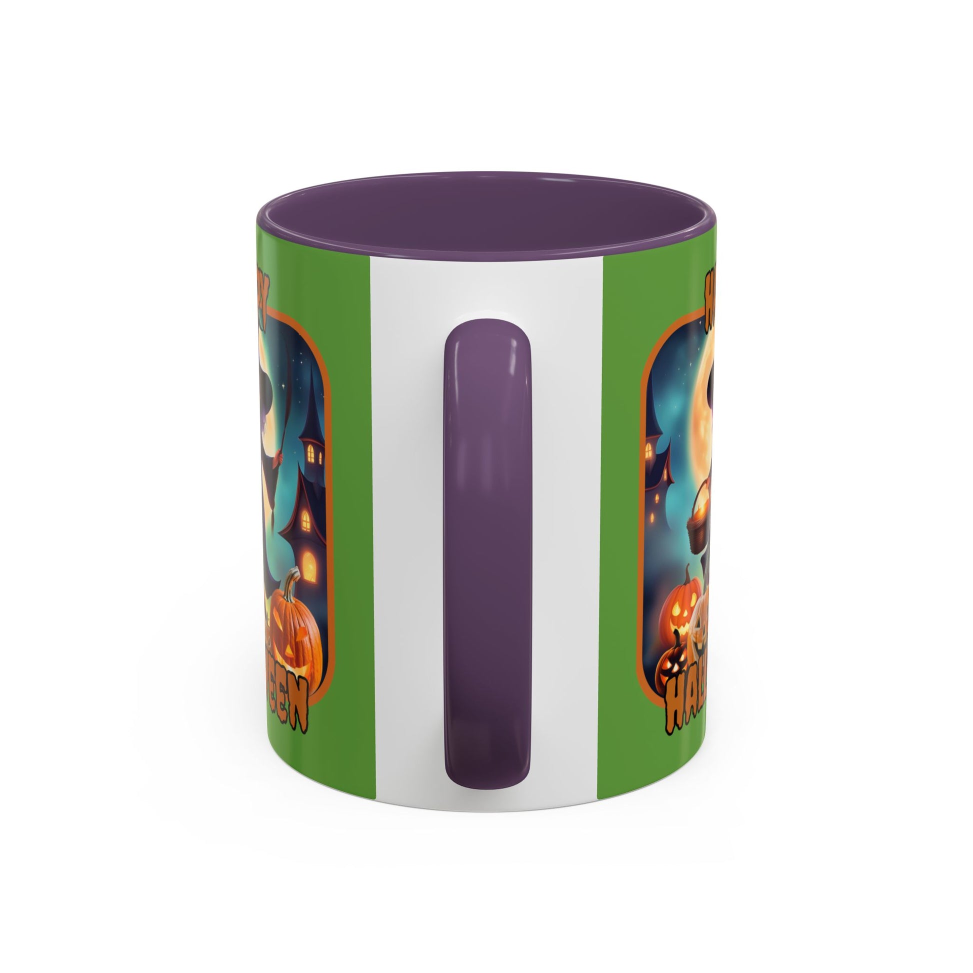 Also available with purple font: Happy Halloween Little Witch Purple font Green Accent Mug by CreepyCrafts.boo