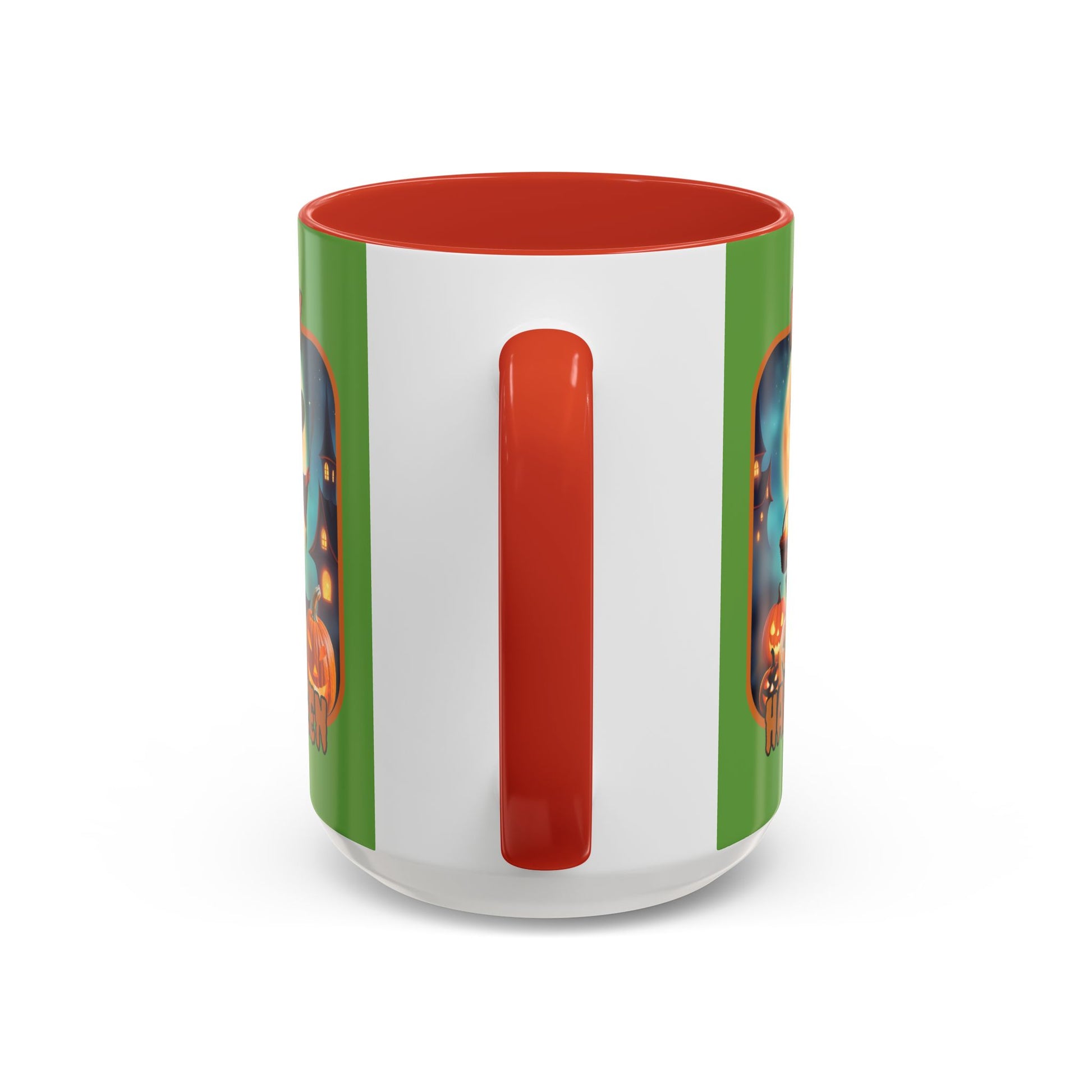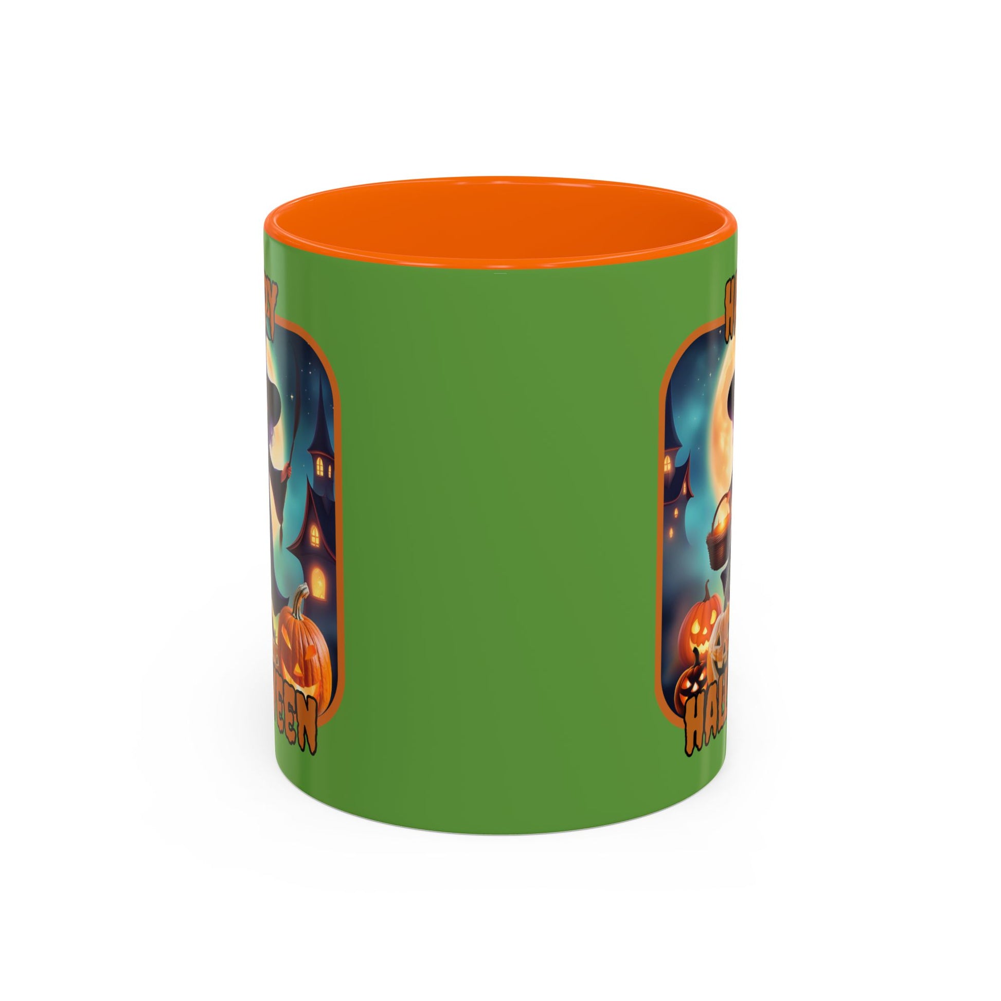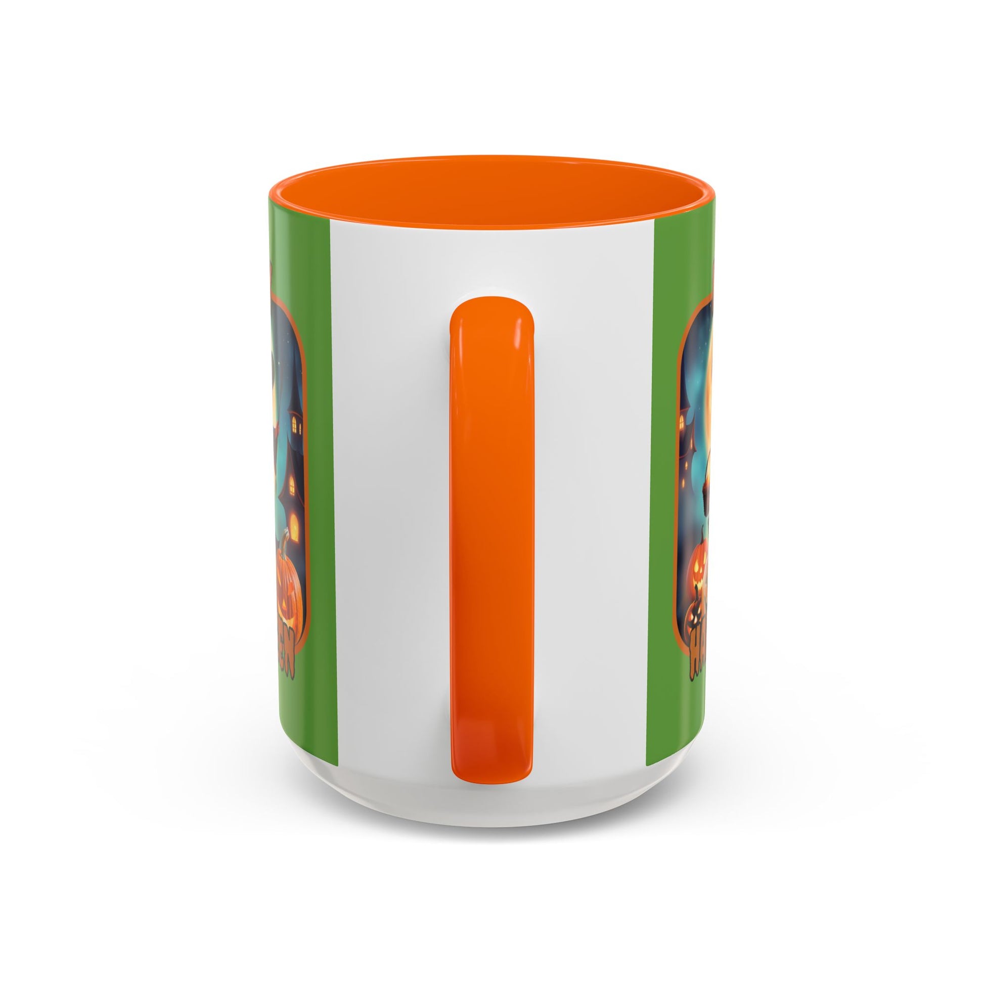 Happy Halloween Little Witch Orange font Green Accent Mug by CreepyCrafts.boo